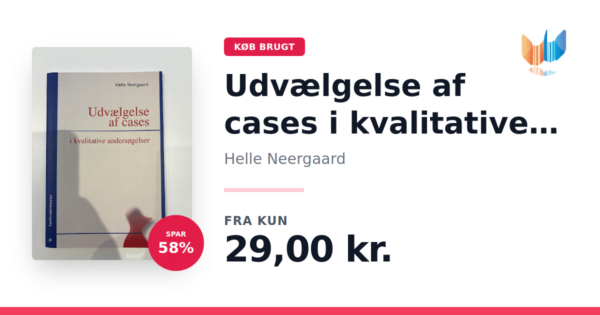 Lige nu kan du købe "Udvælgelse af cases i kvalitative undersøgelser" af Helle Neergaard til kun 29,00 kr. Du sparer hele 58% af nyprisen! Bogen du ser her er brugt, og i perfekt stand. Vi har i øjeblikket kun et enkelt eksemplar til salg af "Udvælgelse af cases i kvalitative undersøgelser", så slå til mens du kan!