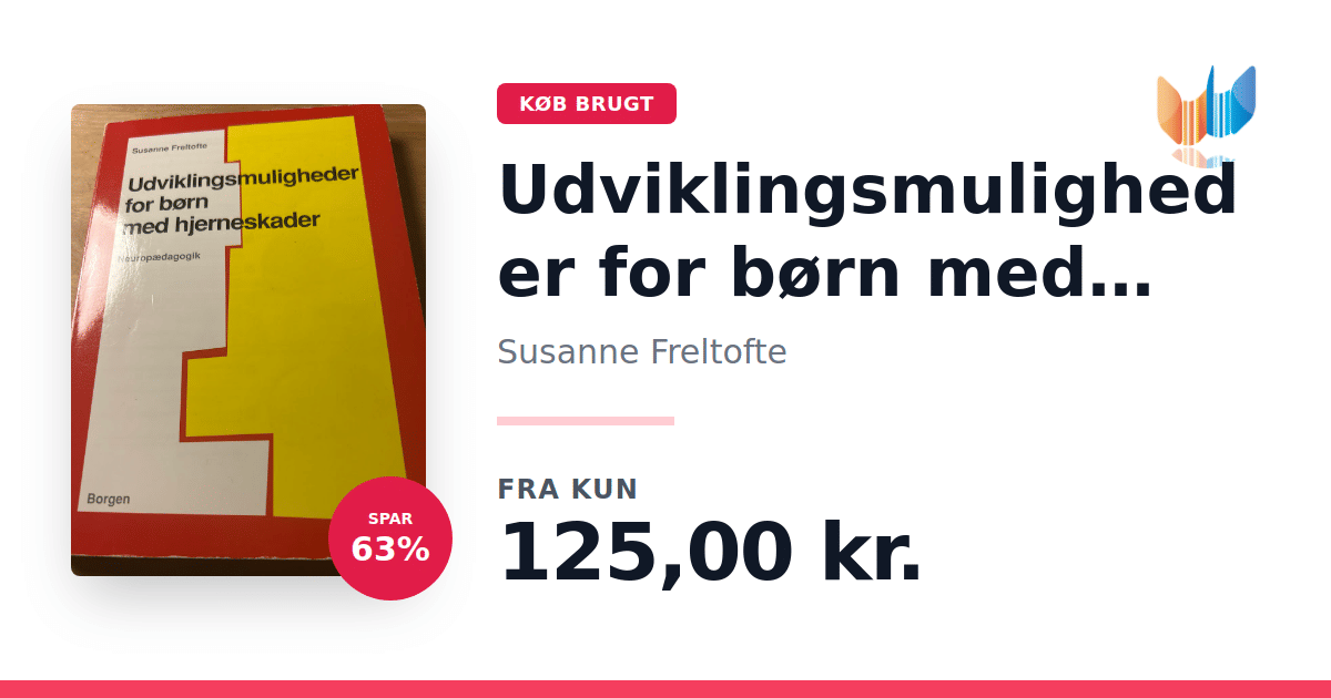 Lige nu kan du købe "Udviklingsmuligheder for børn med hjerneskader" af Susanne Freltofte til kun 125,00 kr. Du sparer hele 63% af nyprisen! Bogen du ser her er brugt, og i god stand. Vi har i øjeblikket kun et enkelt eksemplar til salg af "Udviklingsmuligheder for børn med hjerneskader", så slå til mens du kan!
