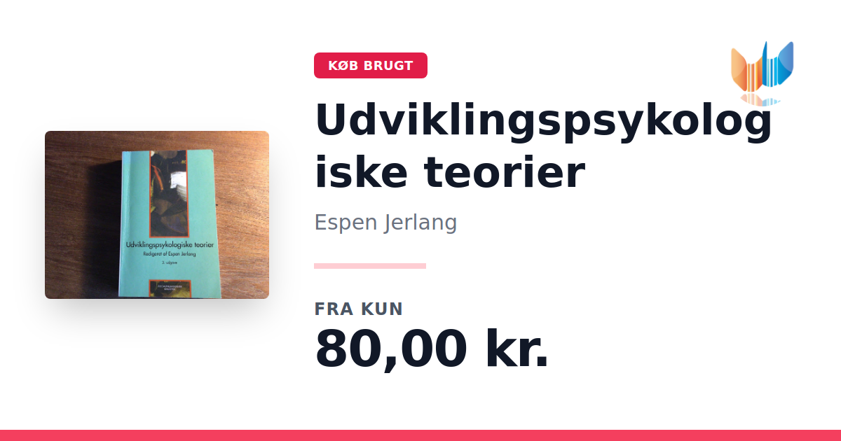 Lige nu kan du købe "Udviklingspsykologiske teorier" af Espen Jerlang til kun 80,00 kr. Bogen du ser her er brugt, og i perfekt stand. Vi har i øjeblikket 8 eksemplarer til salg af "Udviklingspsykologiske teorier", så husk at se de forskellige udgaver.