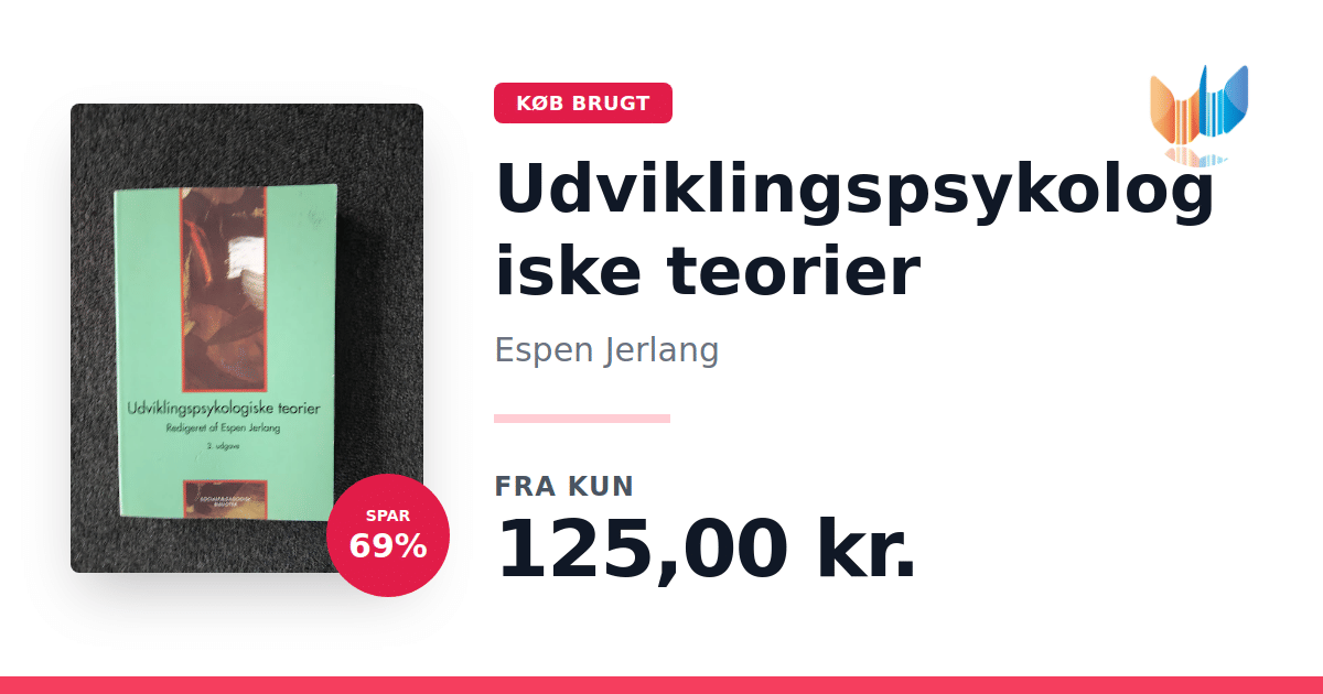 Lige nu kan du købe "Udviklingspsykologiske teorier" af Espen Jerlang til kun 125,00 kr. Du sparer hele 69% af nyprisen! Bogen du ser her er brugt, og i god stand. Vi har i øjeblikket 9 eksemplarer til salg af "Udviklingspsykologiske teorier", så husk at se de forskellige udgaver.