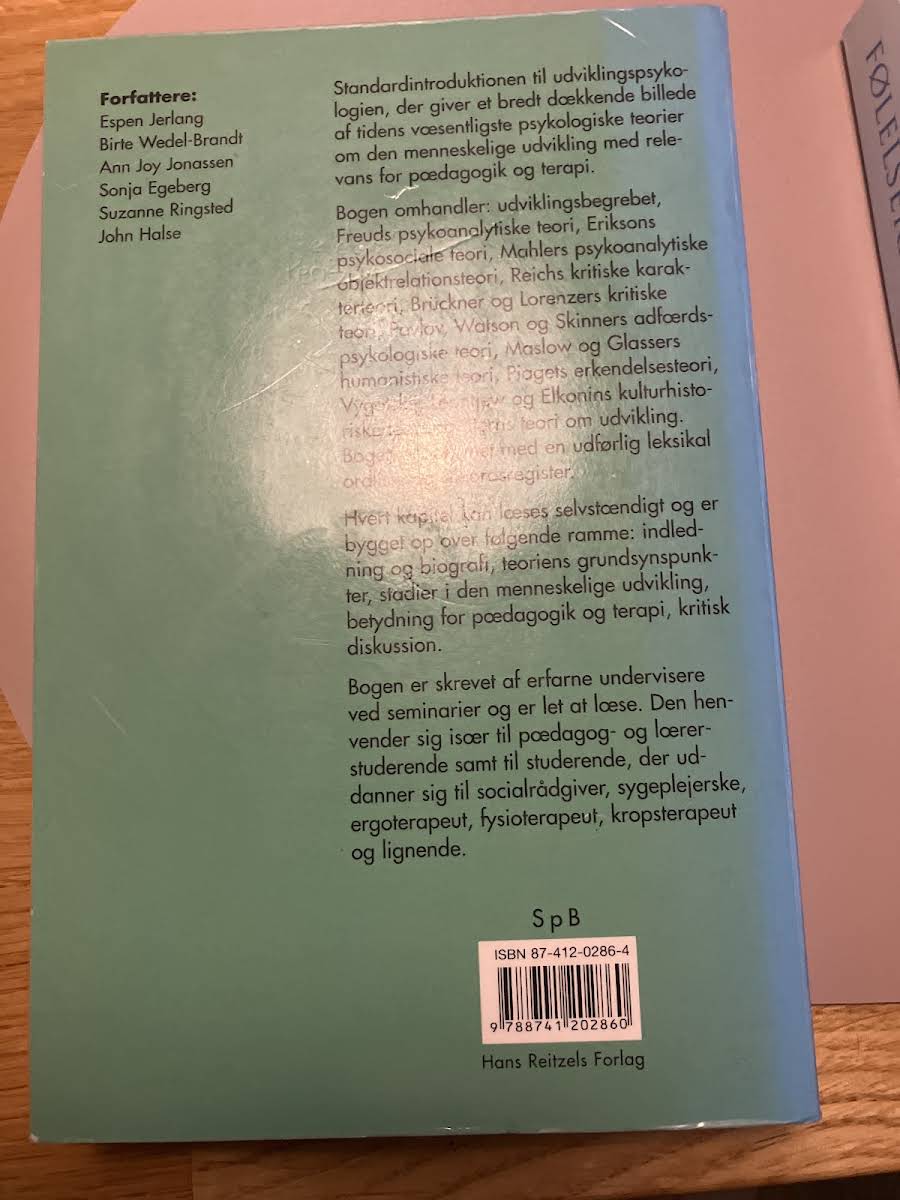 "Udviklingspsykologiske teorier" (3. udgave, 2005) byder på en alsidig introduktion til de centrale teorier inden for udviklingspsykologi. Bogen skaber et bredt overblik over, hvordan menneskelig udvikling kan forstås gennem tidens mest indflydelsesrige teoretiske perspektiver. Læseren møder teorier om udviklingsbegrebet, Freuds psykoanalytiske tilgang, Eriksons psykosociale model, Mahlers objektrelationsteori, Reichs kritiske karakterteori samt Brückner og Lorenzers kritiske perspektiver. Desuden redegøres der for adfærdspsykologiske teorier med fokus på Pavlov, Watson og Skinner, efterfulgt af gennemgang af Piagets erkendelsesteori, og videre med Vygotskij, Leontjew og Elkonins kulturhistoriske syn samt Sterns udviklingsteori. Hvert kapitel er omhyggeligt opbygget, så det kan læses både som et selvstændigt indslag og som en del af helheden. Kapitelstrukturen med indledning, biografi, teoriens grundsynspunkter, udviklingsstadier, relevans for pædagogik og terapi samt en kritisk diskussion gør bogen til en værdifuld ressource. En udførlig leksikal ordliste og et stikordsregister understøtter den pædagogiske tilgang og sikrer, at studerende inden for pædagogik, læring, socialt arbejde, sygepleje, ergoterapi og beslægtede fagområder kan finde både dybdegående teoretisk indsigt og praktiske perspektiver.