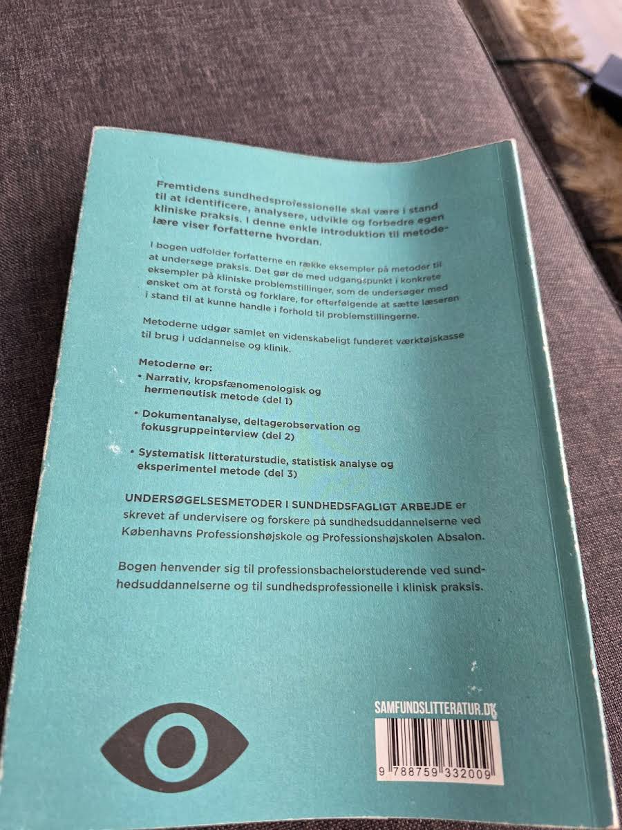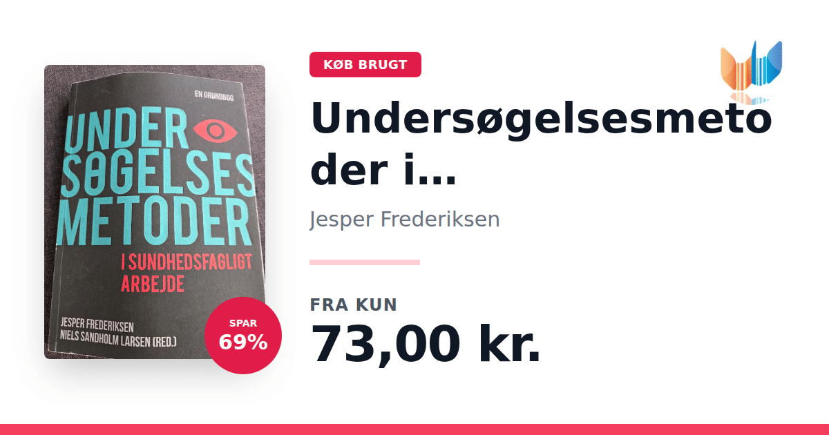 I "Undersøgelsesmetoder i sundhedsfagligt arbejde" introducerer Jesper Frederiksen en bred vifte af metoder, der understøtter sundhedsprofessionelles evne til at identificere, analysere og udvikle klinisk praksis. Bogen illustrerer, hvordan konkrete kliniske problemstillinger kan undersøges med henblik på både at forstå og forklare komplekse sammenhænge, således at læseren opnår værktøjer til aktivt at håndtere udfordringer i det daglige arbejde. Indholdet er inddelt i tre hoveddele, der tilsammen udgør en videnskabeligt funderet værktøjskasse. I første del behandles den narrative, kropsfænomenologiske og hermeneutiske tilgang. Anden del fokuserer på metoder som dokumentanalyse, deltagerobservation og fokusgruppeinterview, mens den tredje del præsenterer systematisk litteraturstudie, statistisk analyse og eksperimentel metode. Denne inddeling sikrer, at både kvalitative og kvantitative metoder fremhæves i forhold til en helhedsorienteret praksisundersøgelse. Bogen, som består af 215 sider i paperback og blev udgivet af Samfundslitteratur i 2019, henvender sig til professionsbachelorstuderende inden for sundhedsuddannelserne samt til sundhedsprofessionelle, der ønsker at styrke deres forskningsbaserede tilgang i klinisk praksis.