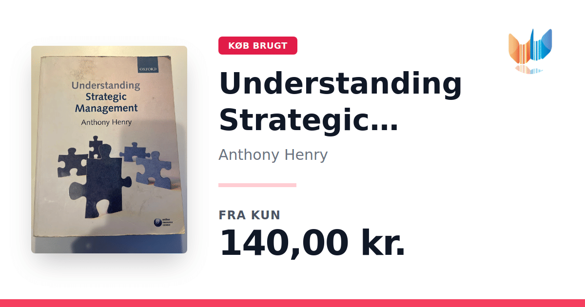 Lige nu kan du købe "Understanding Strategic Management" af Anthony Henry til kun 140,00 kr. Bogen du ser her er brugt, og i god stand. Vi har i øjeblikket kun et enkelt eksemplar til salg af "Understanding Strategic Management", så slå til mens du kan!
