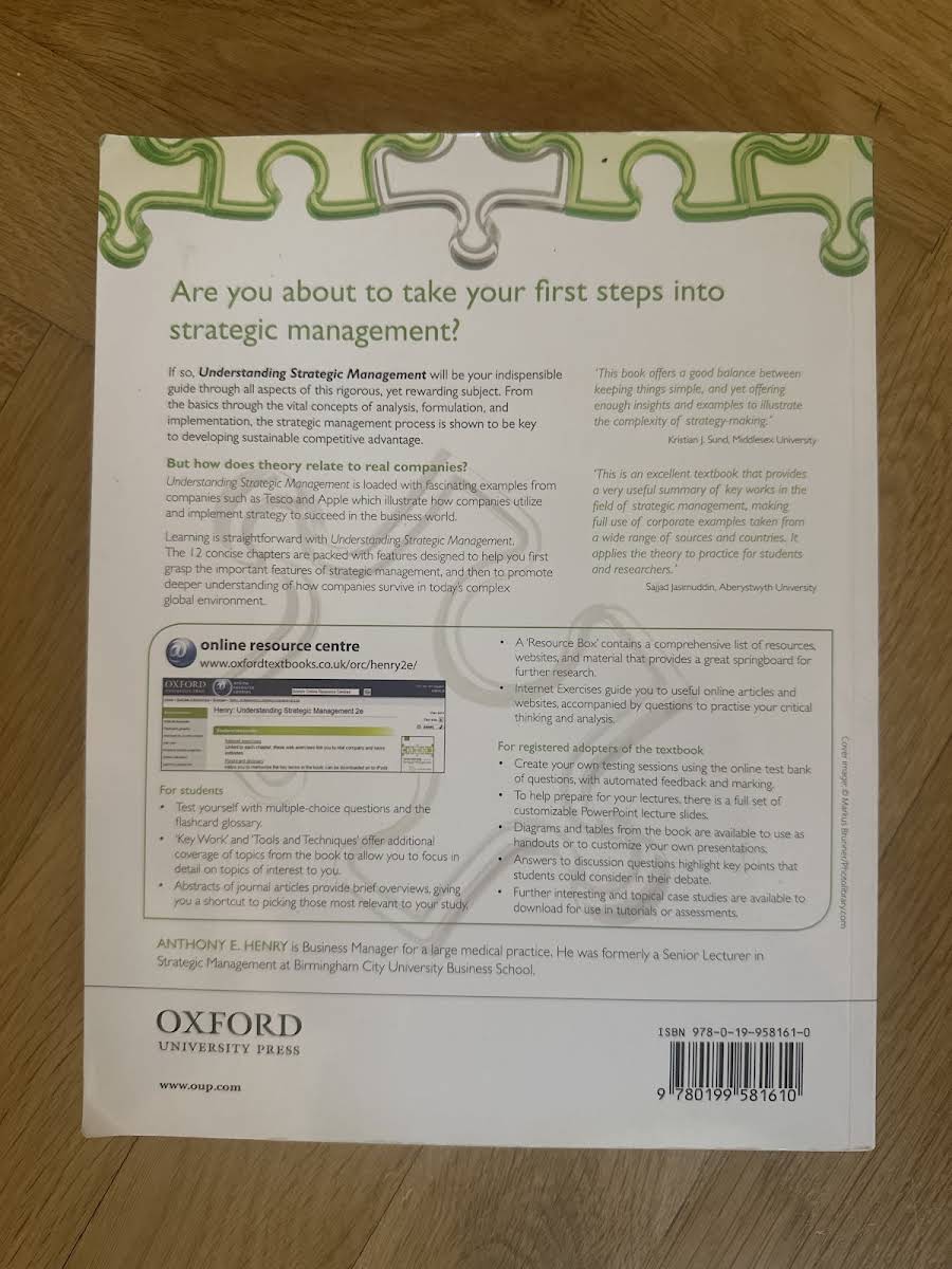 Understanding Strategic Management, 2. udgave bygger videre på første udgaves solide grundlag med en yderst klar og præcis skrivestil, der formidler komplekse strategiske begreber på en lettilgængelig måde. Bogen fastholder fokus på grundig analyse og inddragelse af relevante, aktuelle case-studier samt præsenterer forskellige faglige perspektiver inden for strategisk ledelse. Gennem talrige eksempler fra virkelighedens virksomheder illustreres kernekoncepter og den underliggende teori, så studerende kan se direkte sammenhænge mellem teori og praksis. Med særlig vægt på at udstyre læseren med væsentlige analytiske værktøjer er teksten desuden tæt knyttet til Companion Website, hvor yderligere kvantitative øvelser og materiale er tilgængeligt.
