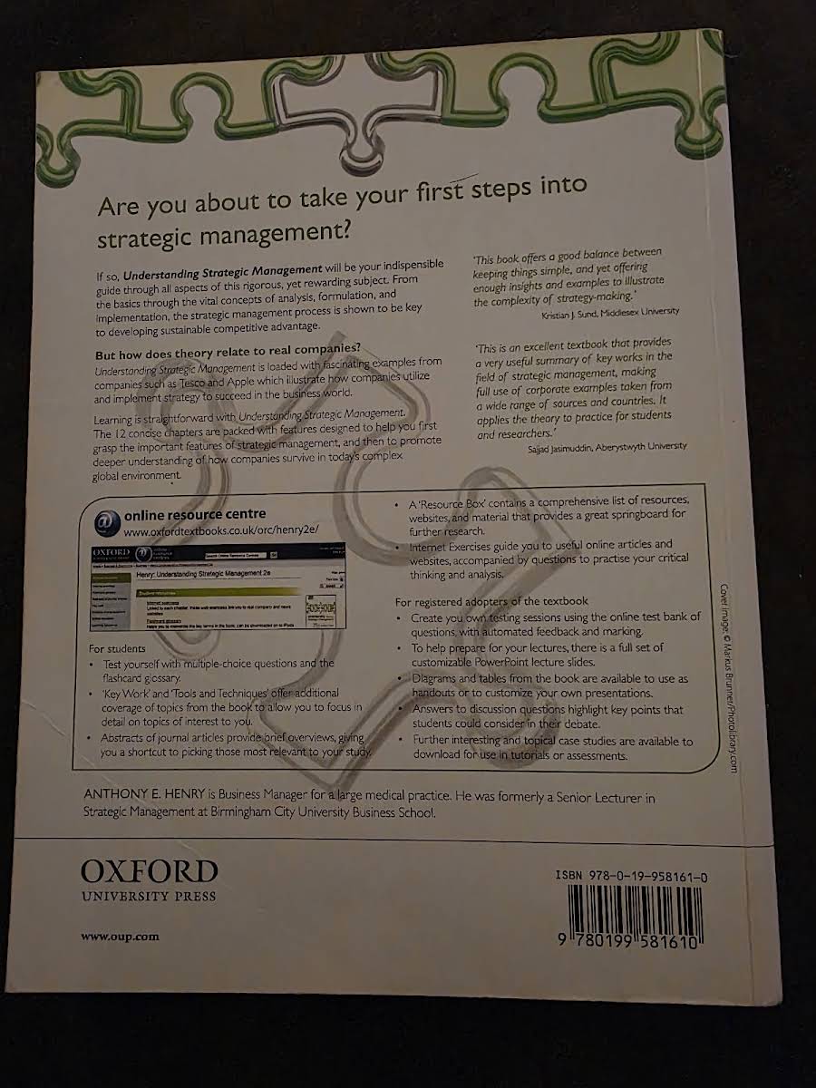 Understanding Strategic Management, 2. udgave bygger videre på første udgaves solide grundlag med en yderst klar og præcis skrivestil, der formidler komplekse strategiske begreber på en lettilgængelig måde. Bogen fastholder fokus på grundig analyse og inddragelse af relevante, aktuelle case-studier samt præsenterer forskellige faglige perspektiver inden for strategisk ledelse. Gennem talrige eksempler fra virkelighedens virksomheder illustreres kernekoncepter og den underliggende teori, så studerende kan se direkte sammenhænge mellem teori og praksis. Med særlig vægt på at udstyre læseren med væsentlige analytiske værktøjer er teksten desuden tæt knyttet til Companion Website, hvor yderligere kvantitative øvelser og materiale er tilgængeligt.