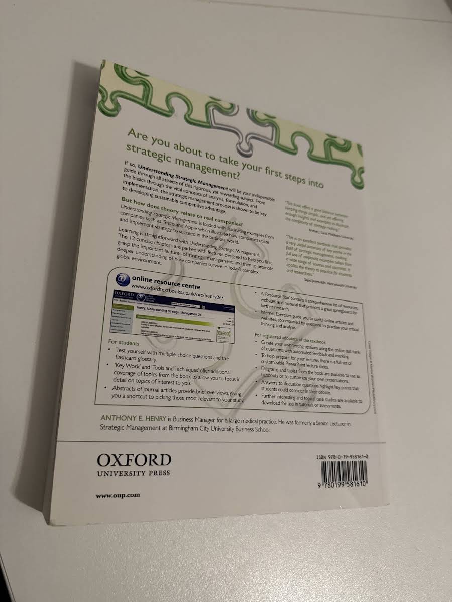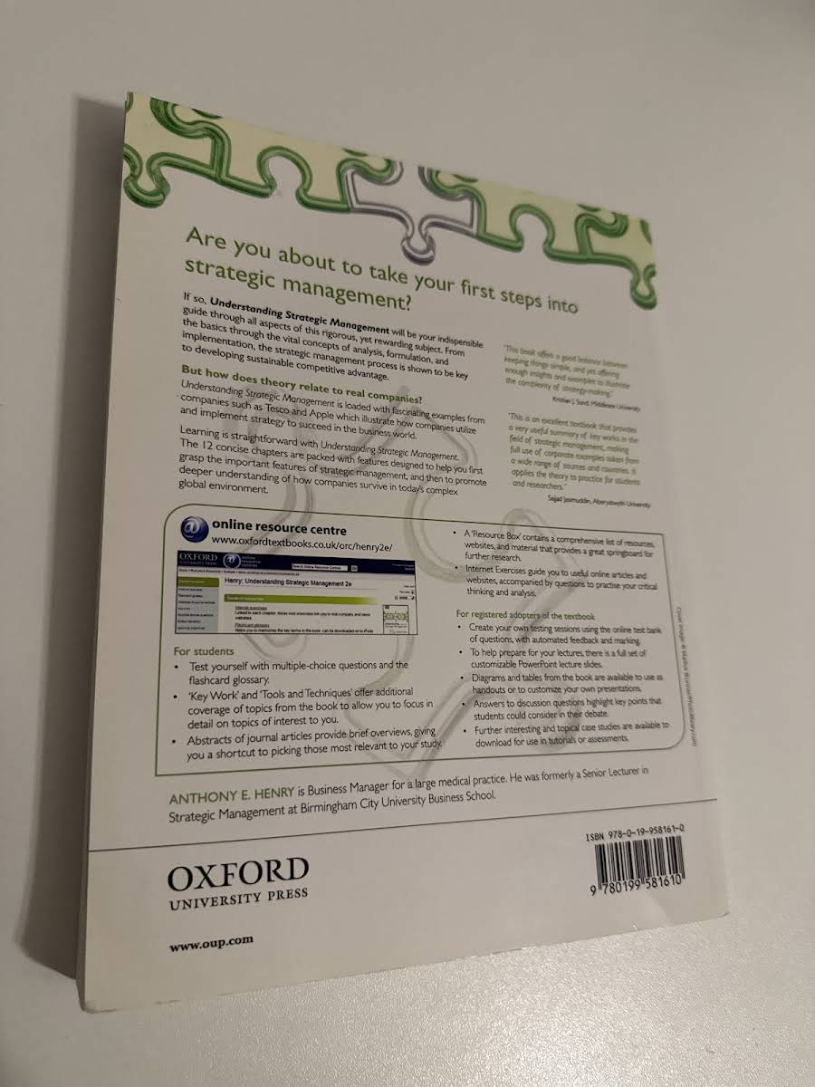 Understanding Strategic Management, 2. udgave bygger videre på første udgaves solide grundlag med en yderst klar og præcis skrivestil, der formidler komplekse strategiske begreber på en lettilgængelig måde. Bogen fastholder fokus på grundig analyse og inddragelse af relevante, aktuelle case-studier samt præsenterer forskellige faglige perspektiver inden for strategisk ledelse. Gennem talrige eksempler fra virkelighedens virksomheder illustreres kernekoncepter og den underliggende teori, så studerende kan se direkte sammenhænge mellem teori og praksis. Med særlig vægt på at udstyre læseren med væsentlige analytiske værktøjer er teksten desuden tæt knyttet til Companion Website, hvor yderligere kvantitative øvelser og materiale er tilgængeligt.