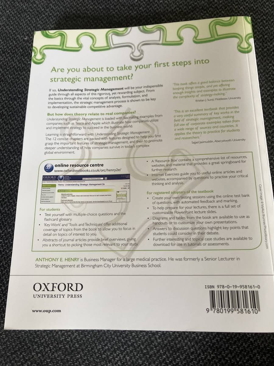 Understanding Strategic Management, 2. udgave bygger videre på første udgaves solide grundlag med en yderst klar og præcis skrivestil, der formidler komplekse strategiske begreber på en lettilgængelig måde. Bogen fastholder fokus på grundig analyse og inddragelse af relevante, aktuelle case-studier samt præsenterer forskellige faglige perspektiver inden for strategisk ledelse. Gennem talrige eksempler fra virkelighedens virksomheder illustreres kernekoncepter og den underliggende teori, så studerende kan se direkte sammenhænge mellem teori og praksis. Med særlig vægt på at udstyre læseren med væsentlige analytiske værktøjer er teksten desuden tæt knyttet til Companion Website, hvor yderligere kvantitative øvelser og materiale er tilgængeligt.