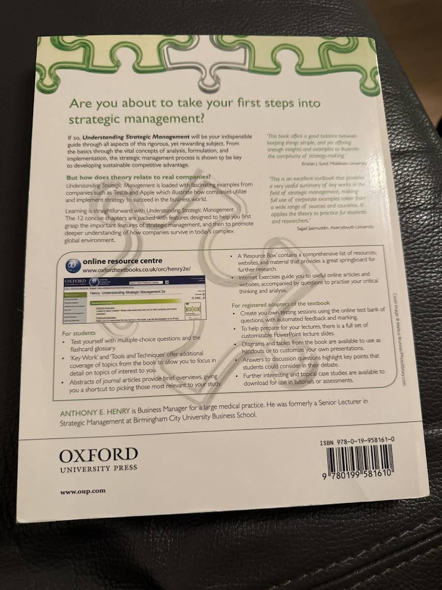 Understanding Strategic Management, 2. udgave bygger videre på første udgaves solide grundlag med en yderst klar og præcis skrivestil, der formidler komplekse strategiske begreber på en lettilgængelig måde. Bogen fastholder fokus på grundig analyse og inddragelse af relevante, aktuelle case-studier samt præsenterer forskellige faglige perspektiver inden for strategisk ledelse. Gennem talrige eksempler fra virkelighedens virksomheder illustreres kernekoncepter og den underliggende teori, så studerende kan se direkte sammenhænge mellem teori og praksis. Med særlig vægt på at udstyre læseren med væsentlige analytiske værktøjer er teksten desuden tæt knyttet til Companion Website, hvor yderligere kvantitative øvelser og materiale er tilgængeligt.