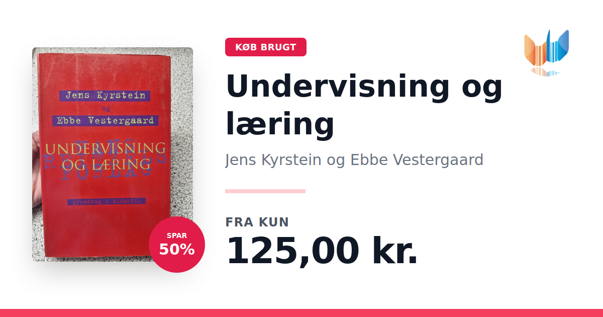 Lige nu kan du købe "Undervisning og læring" af Jens Kyrstein og Ebbe Vestergaard til kun 125,00 kr. Du sparer hele 50% af nyprisen! Bogen du ser her er brugt, og i perfekt stand. Vi har i øjeblikket 2 eksemplarer til salg af "Undervisning og læring", så husk at se de forskellige udgaver.