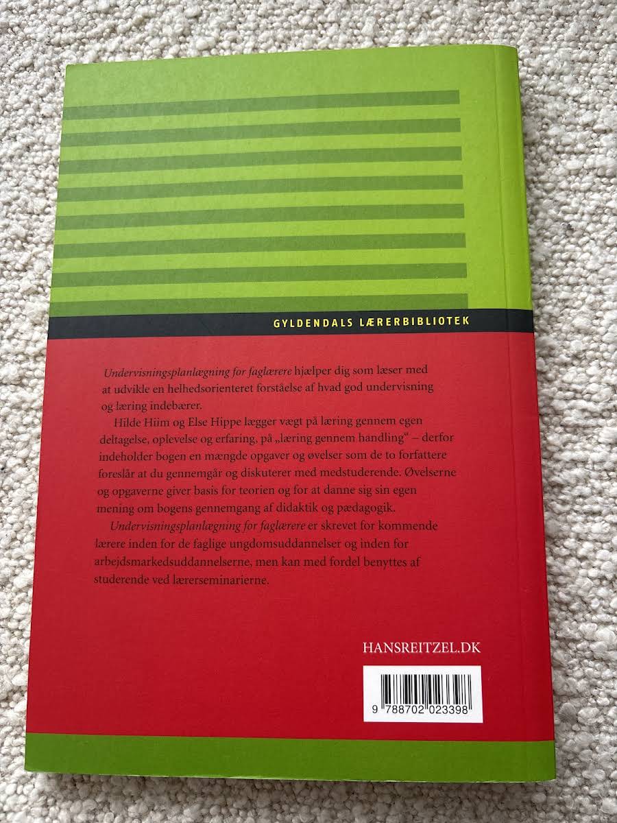 Undervisningsplanlægning for faglærere henvender sig til kommende undervisere på de faglige ungdomsuddannelser og arbejdsmarkedsuddannelser. Den 2. udgave fra 2003, skrevet af Hilde Hiim og udgivet af Gyldendal, er også et værdifuldt redskab for studerende ved lærerseminarierne. Bogen hjælper dig med at udvikle en helhedsorienteret forståelse af, hvad god undervisning og læring indebærer.