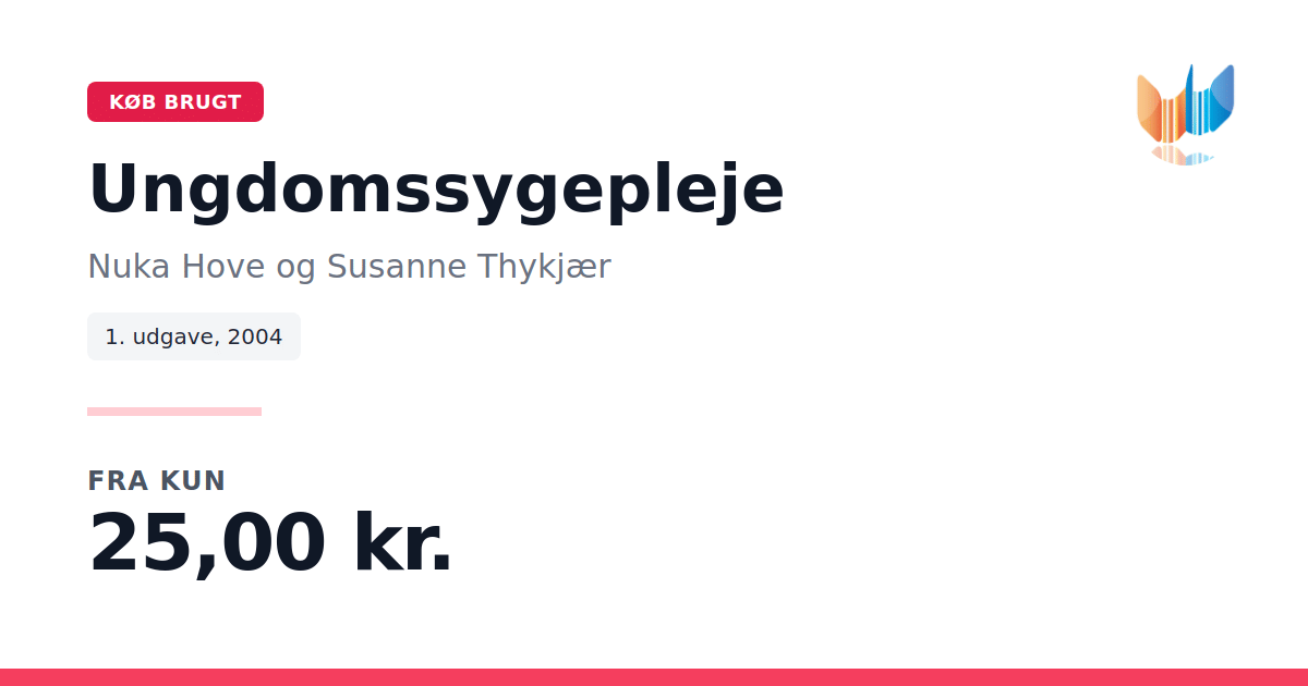 Lige nu kan du købe "Ungdomssygepleje" af Nuka Hove og Susanne Thykjær til kun 25,00 kr. Bogen du ser her er brugt, og i perfekt stand. Vi har i øjeblikket kun et enkelt eksemplar til salg af "Ungdomssygepleje", så slå til mens du kan!