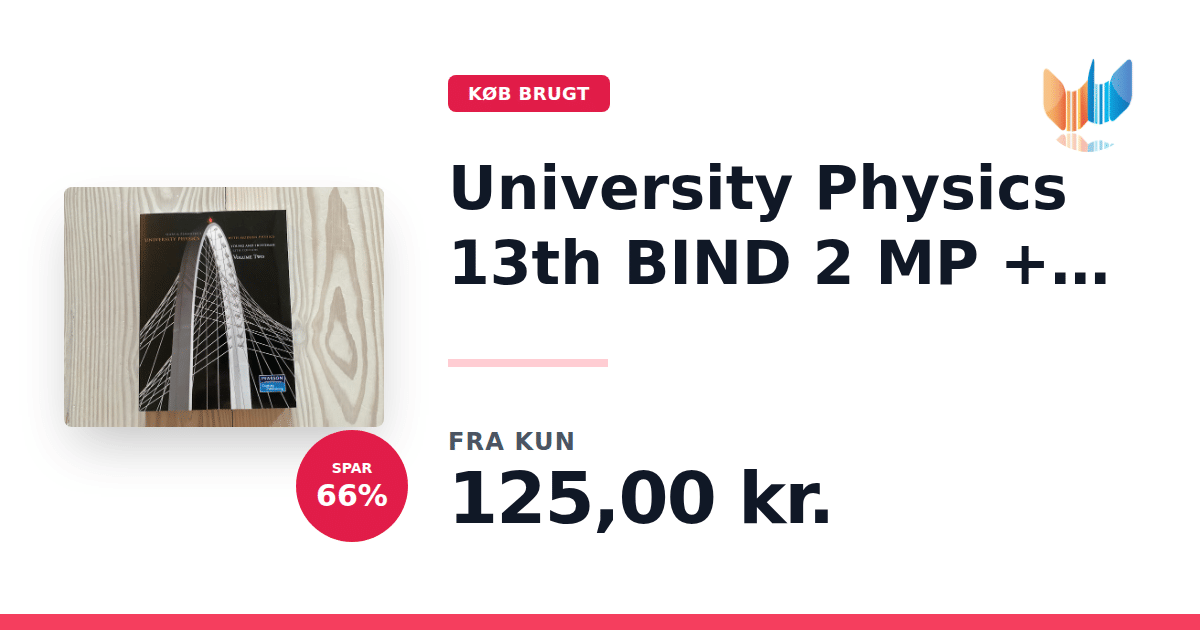 Lige nu kan du købe "University Physics 13th BIND 2 MP + etext" til kun 125,00 kr. Du sparer hele 66% af nyprisen! Bogen du ser her er brugt, og i god stand. Vi har i øjeblikket kun et enkelt eksemplar til salg af "University Physics 13th BIND 2 MP + etext", så slå til mens du kan!