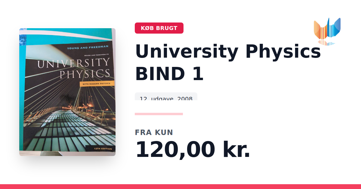 Lige nu kan du købe "University Physics BIND 1" til kun 120,00 kr. Bogen du ser her er brugt, og i slidt stand. Vi har i øjeblikket 6 eksemplarer til salg af "Sears and Zemansky's University Physics", så husk at se de forskellige udgaver.