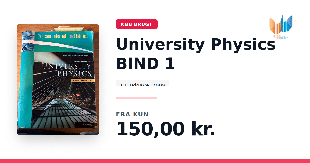 Lige nu kan du købe "University Physics BIND 1" til kun 150,00 kr. Bogen du ser her er brugt, og i slidt stand. Vi har i øjeblikket 9 eksemplarer til salg af "Sears and Zemansky's University Physics", så husk at se de forskellige udgaver.