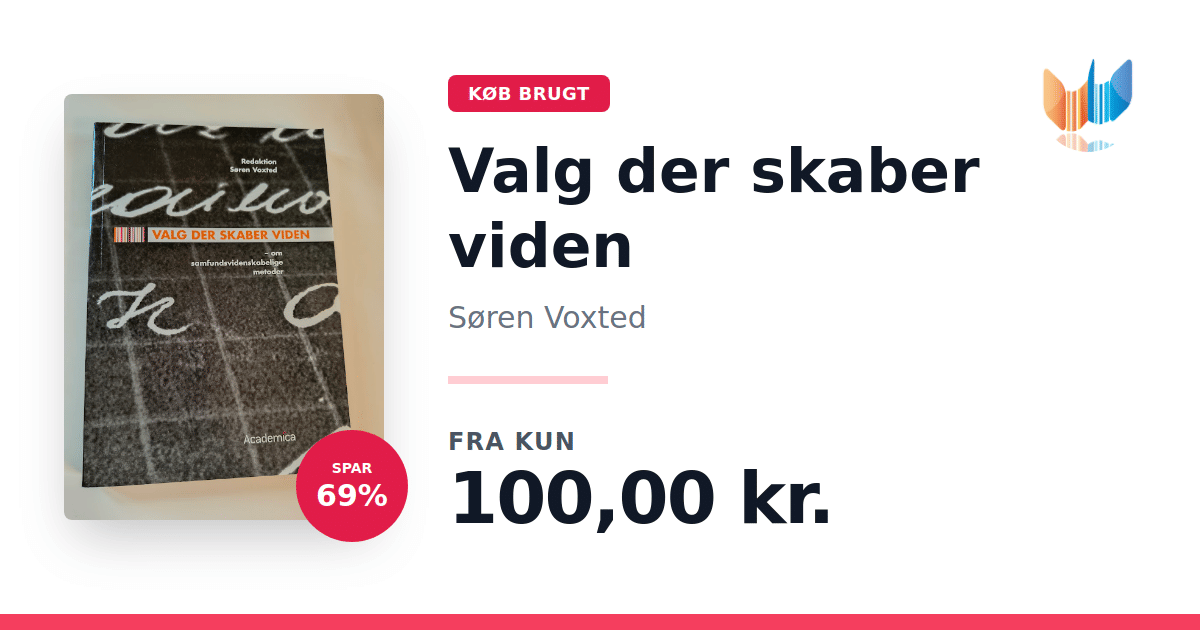 Lige nu kan du købe "Valg der skaber viden" af Søren Voxted til kun 100,00 kr. Du sparer hele 69% af nyprisen! Bogen du ser her er brugt, og i god stand. Vi har i øjeblikket 8 eksemplarer til salg af "Valg der skaber viden", så husk at se de forskellige udgaver.