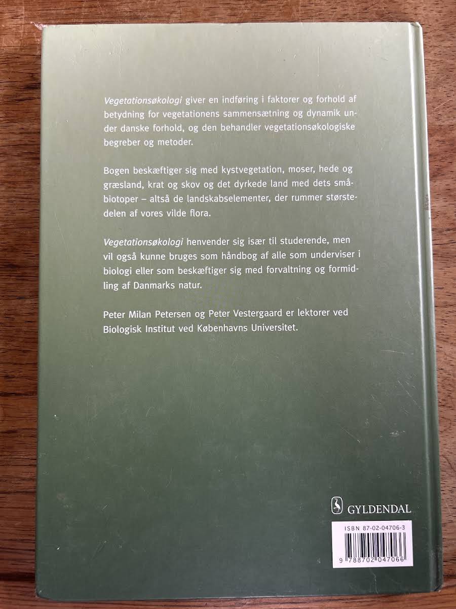"Vegetationsøkologi" giver en grundig introduktion til de faktorer og processer, der former den danske vegetations sammensætning og dynamik. Med fokus på landskabets forskellige elementer som kyster, moser, hede, græsland, krat og skove udforsker bogen, hvordan både naturlige og menneskeskabte forhold spiller ind på vegetationens udvikling. Skrevet af Peter Milan Petersen og Peter Vestergaard, henvender bogen sig primært til studerende, der ønsker et solidt indblik i vegetationsøkologi. Samtidig fungerer den som et værdifuldt opslagsværk og redskab for undervisere i botanik og biologi samt for alle, der arbejder med eller interesserer sig for forvaltningen og formidlingen af dansk natur.