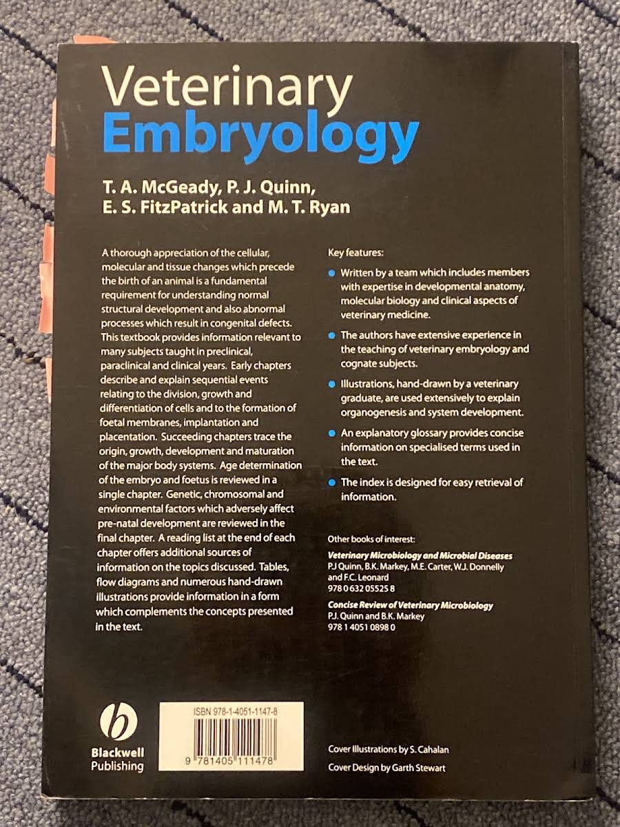 • Veterinary Embryology, T. A. McGeady, P. J. Quinn, E. S. FitzPatrick, M. T. Ryan, 9781405111478