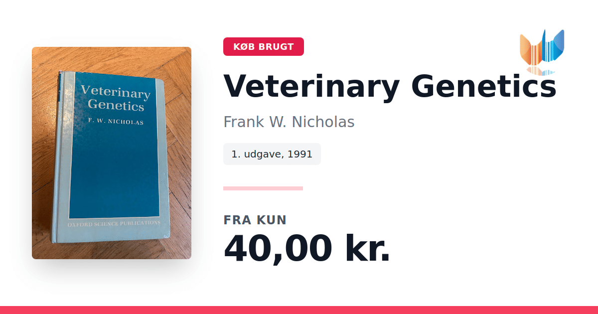 Lige nu kan du købe "Veterinary Genetics" af Frank W. Nicholas til kun 40,00 kr. Bogen du ser her er brugt, og i slidt stand. Vi har i øjeblikket kun et enkelt eksemplar til salg af "Veterinary Genetics", så slå til mens du kan!