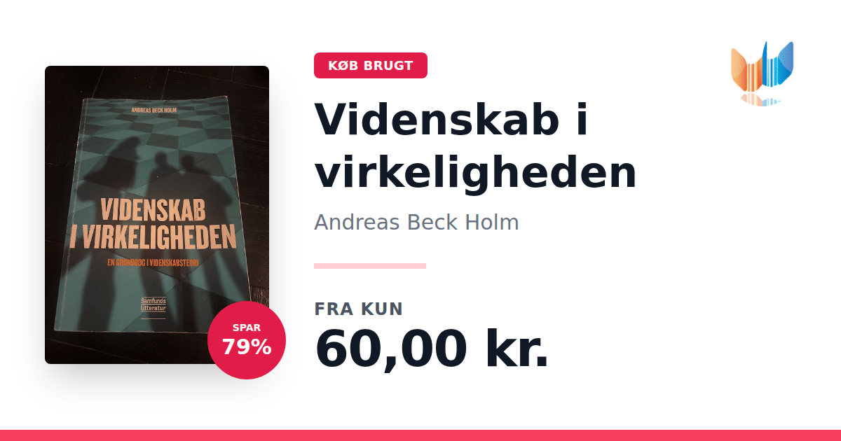 Lige nu kan du købe "Videnskab i virkeligheden" af Andreas Beck Holm til kun 60,00 kr. Du sparer hele 79% af nyprisen! Bogen du ser her er brugt, og i god stand. Vi har i øjeblikket 14 eksemplarer til salg af "Videnskab i virkeligheden", så husk at se de forskellige udgaver.