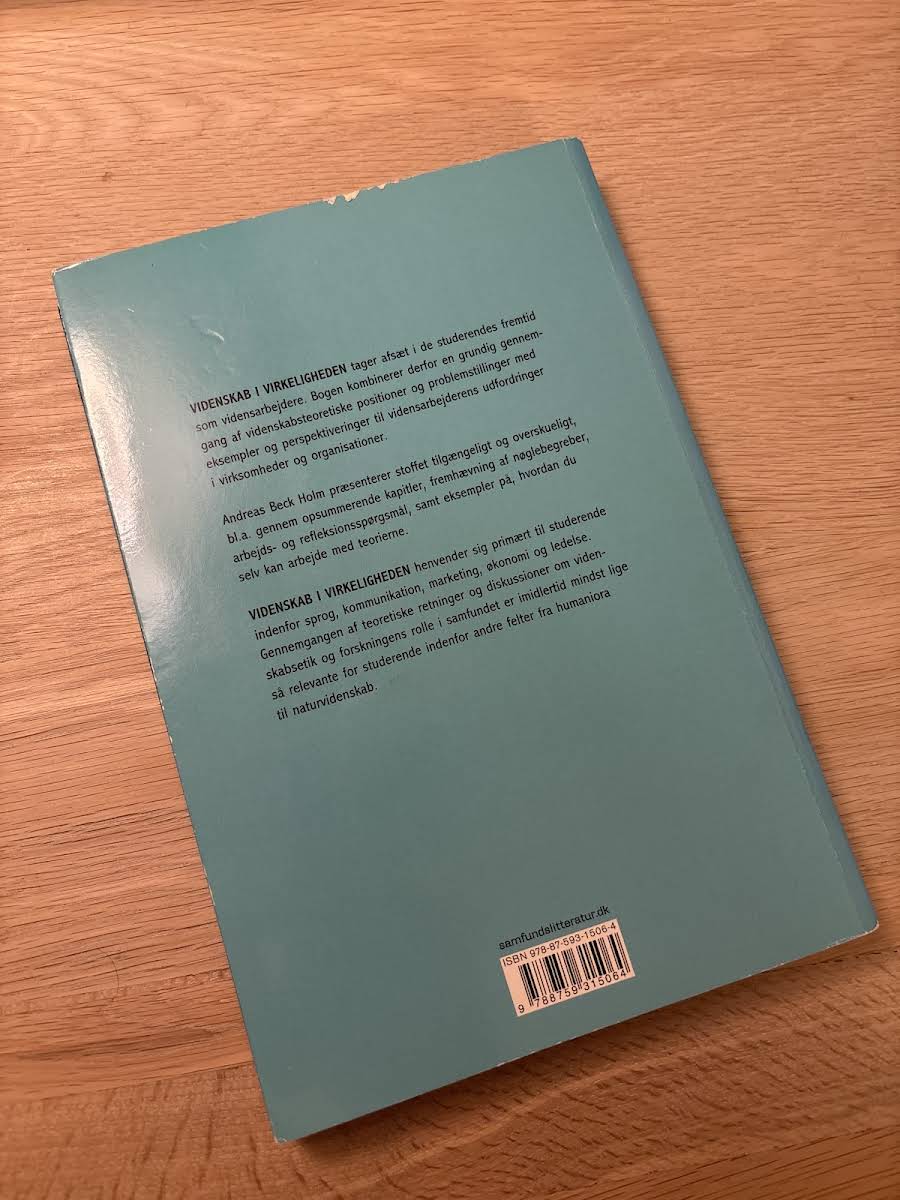 Videnskab i virkeligheden - En grundbog i videnskabsteori præsenterer de fundamentale videnskabsteoretiske positioner i et klart og overskueligt sprog. Andreas Beck Holm kobler klassiske og moderne teorier med eksempler fra virksomheder og organisationer, så læseren kan se, hvordan teorierne spiller sammen med praksis. Gennem opsummerende kapitler skabes et hurtigt overblik, mens fremhævede nøglebegreber sikrer, at de vigtigste pointer står skarpt. Hvert kapitel afsluttes med arbejds- og refleksionsspørgsmål, der udfordrer til aktiv fordybelse og selvstændig anvendelse af stoffet. Bogen henvender sig til studerende og kommende vidensarbejdere, der ønsker et solidt teoretisk fundament til både akademiske og professionelle opgaver. Hardcover, 257 sider. Udkom på Samfundslitteratur i 2011 som 1. udgave.