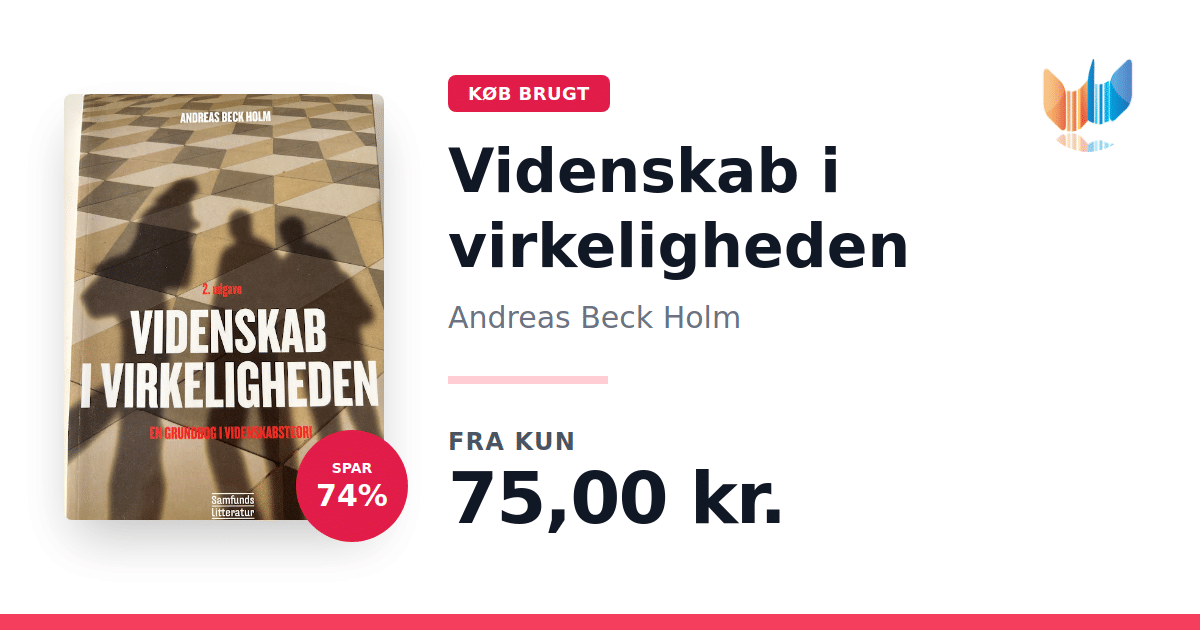 Lige nu kan du købe "Videnskab i virkeligheden" af Andreas Beck Holm til kun 75,00 kr. Du sparer hele 74% af nyprisen! Bogen du ser her er brugt, og i god stand. Vi har i øjeblikket 13 eksemplarer til salg af "Videnskab i virkeligheden", så husk at se de forskellige udgaver.