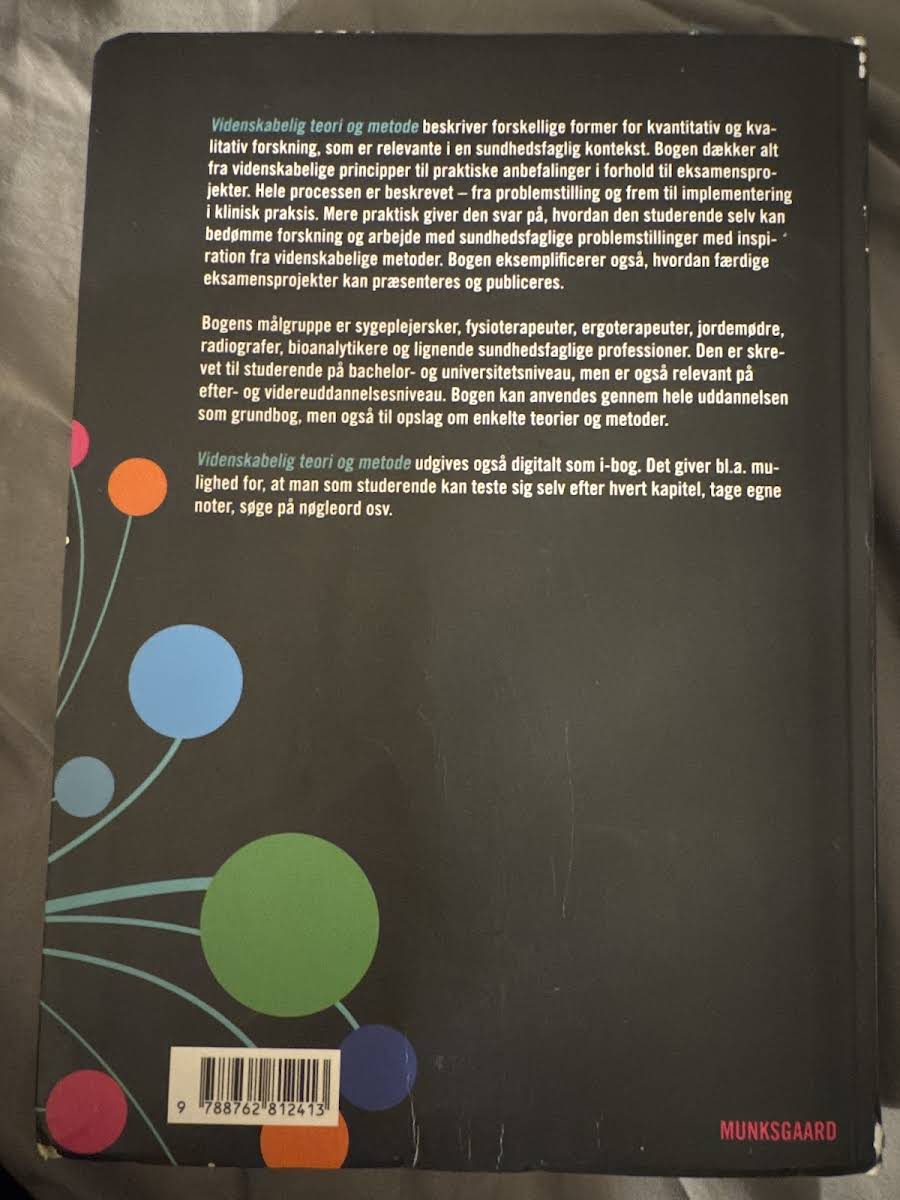 Videnskabelig teori og metode byder på en grundig indføring i både kvantitativ og kvalitativ metodelære, som er essentiel for sundhedsfaglige uddannelser. Bogen præsenterer systematisk de videnskabelige principper og praktiske anbefalinger, der er nødvendige for eksamensprojekter. Med fokus på, hvordan den studerende kan vurdere forskning og fremstille resultater, er bogen et værdifuldt redskab både som grundbog og opslagsværk gennem hele uddannelsen.
