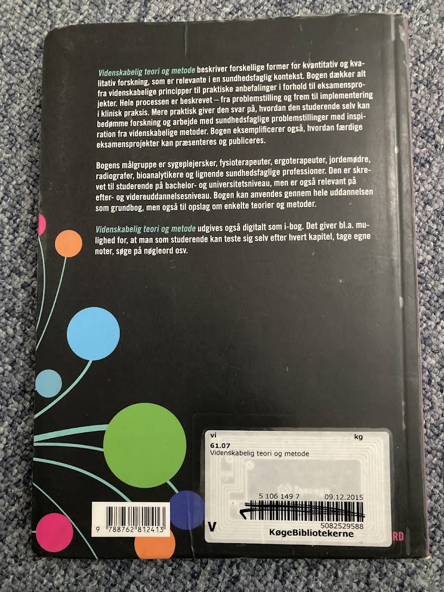 Videnskabelig teori og metode byder på en grundig indføring i både kvantitativ og kvalitativ metodelære, som er essentiel for sundhedsfaglige uddannelser. Bogen præsenterer systematisk de videnskabelige principper og praktiske anbefalinger, der er nødvendige for eksamensprojekter. Med fokus på, hvordan den studerende kan vurdere forskning og fremstille resultater, er bogen et værdifuldt redskab både som grundbog og opslagsværk gennem hele uddannelsen.