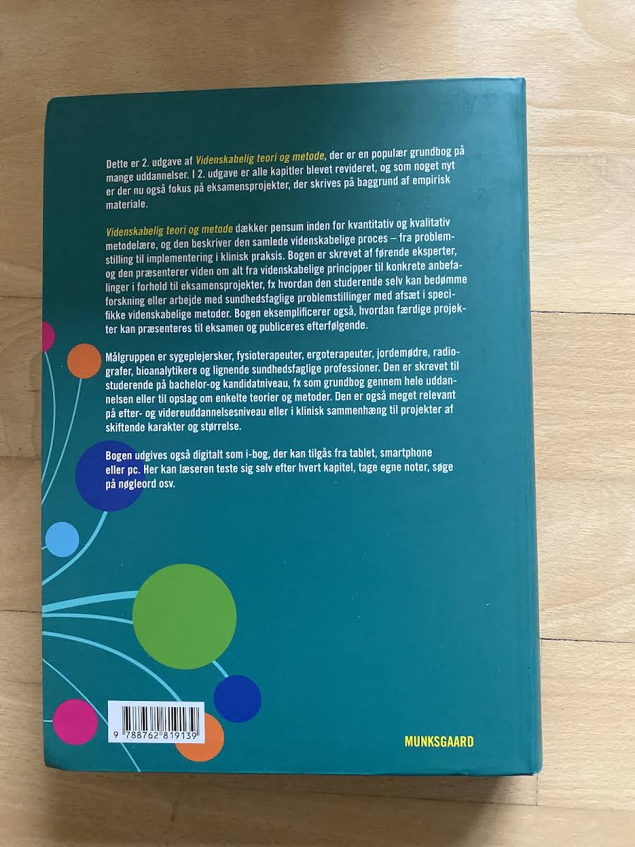 "Videnskabelig teori og metode" (2. udgave) er en anerkendt sundhedsvidenskabelig grundbog redigeret af Maria Henricson. Bogen byder på en dybdegående introduktion til teorier samt kvantitative og kvalitative metoder, der benyttes inden for sundhedsvidenskaben. Med tekster udarbejdet af førende eksperter får den studerende en klar forståelse af den videnskabelige proces – fra den oprindelige problemstilling til den praktiske implementering og evaluering. I denne opdaterede udgave er der lagt særlig vægt på eksamensprojekter, både i forhold til deres udformning og den efterfølgende formidling. Bogen retter sig mod studerende på sundhedsvidenskabelige uddannelser, herunder sygeplejersker, fysioterapeuter, jordemødre, radiografer og bioanalytikere. "Videnskabelig teori og metode" fungerer både som et fundamentalt opslag og som en praktisk guide, der støtter den studerendes videre faglige udvikling.