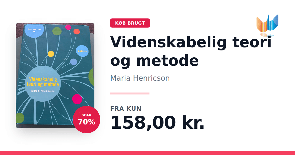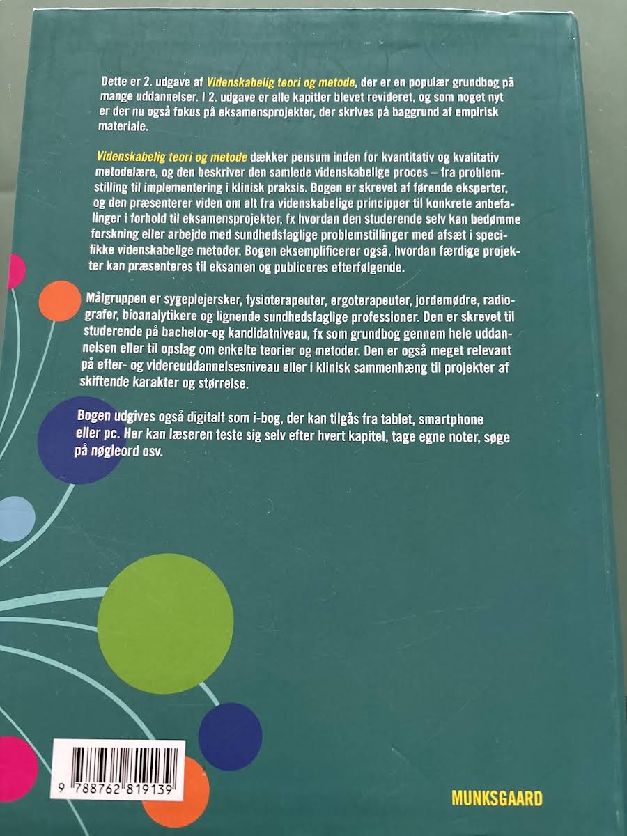 "Videnskabelig teori og metode" (2. udgave) er en anerkendt sundhedsvidenskabelig grundbog redigeret af Maria Henricson. Bogen byder på en dybdegående introduktion til teorier samt kvantitative og kvalitative metoder, der benyttes inden for sundhedsvidenskaben. Med tekster udarbejdet af førende eksperter får den studerende en klar forståelse af den videnskabelige proces – fra den oprindelige problemstilling til den praktiske implementering og evaluering. I denne opdaterede udgave er der lagt særlig vægt på eksamensprojekter, både i forhold til deres udformning og den efterfølgende formidling. Bogen retter sig mod studerende på sundhedsvidenskabelige uddannelser, herunder sygeplejersker, fysioterapeuter, jordemødre, radiografer og bioanalytikere. "Videnskabelig teori og metode" fungerer både som et fundamentalt opslag og som en praktisk guide, der støtter den studerendes videre faglige udvikling.