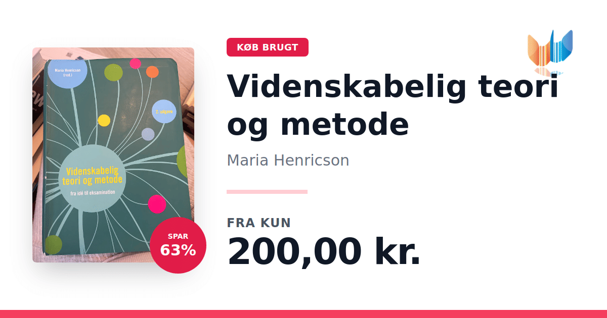 "Videnskabelig teori og metode" (2. udgave) er en anerkendt sundhedsvidenskabelig grundbog redigeret af Maria Henricson. Bogen byder på en dybdegående introduktion til teorier samt kvantitative og kvalitative metoder, der benyttes inden for sundhedsvidenskaben. Med tekster udarbejdet af førende eksperter får den studerende en klar forståelse af den videnskabelige proces – fra den oprindelige problemstilling til den praktiske implementering og evaluering. I denne opdaterede udgave er der lagt særlig vægt på eksamensprojekter, både i forhold til deres udformning og den efterfølgende formidling. Bogen retter sig mod studerende på sundhedsvidenskabelige uddannelser, herunder sygeplejersker, fysioterapeuter, jordemødre, radiografer og bioanalytikere. "Videnskabelig teori og metode" fungerer både som et fundamentalt opslag og som en praktisk guide, der støtter den studerendes videre faglige udvikling.