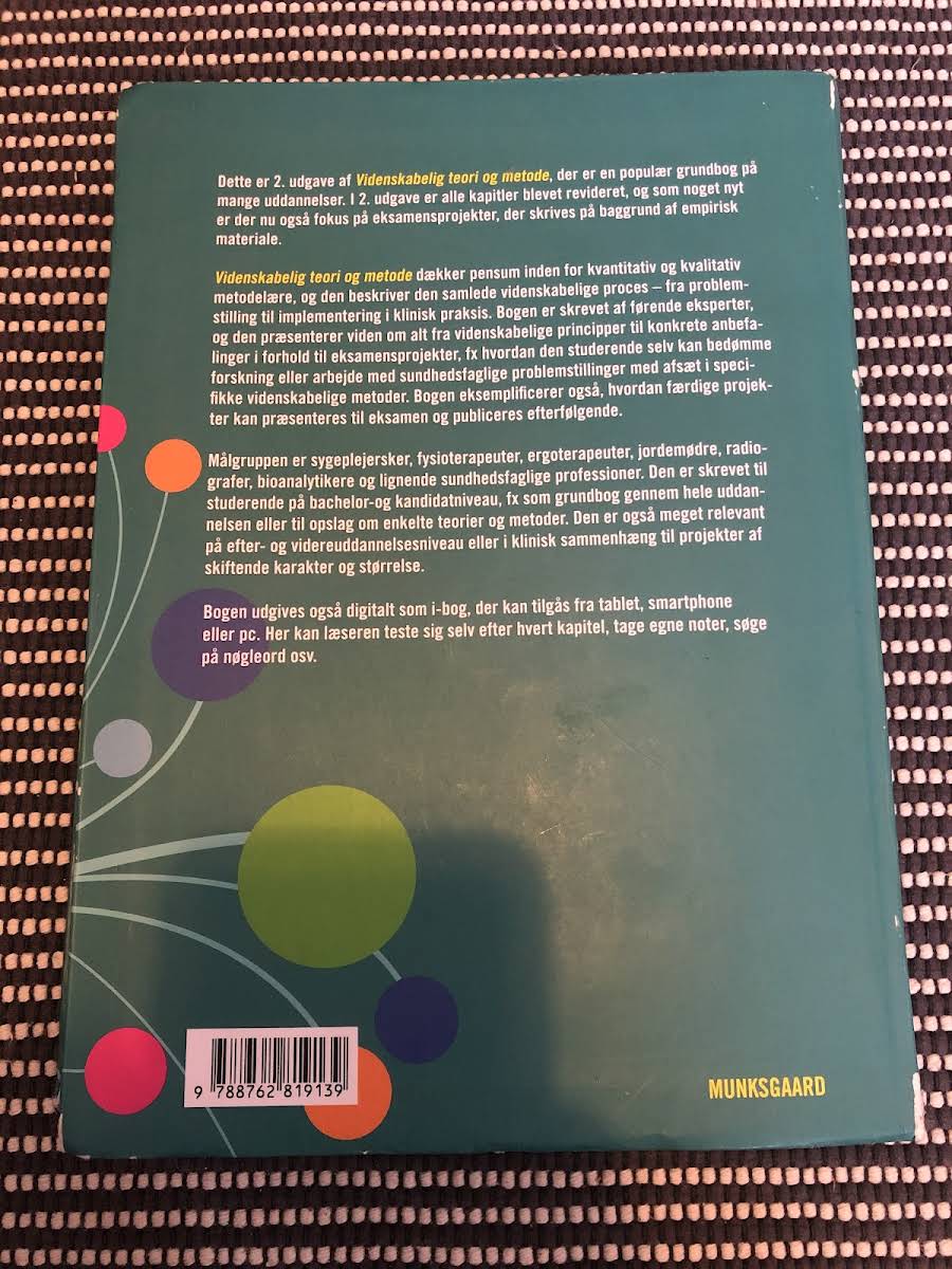 "Videnskabelig teori og metode" (2. udgave) er en anerkendt sundhedsvidenskabelig grundbog redigeret af Maria Henricson. Bogen byder på en dybdegående introduktion til teorier samt kvantitative og kvalitative metoder, der benyttes inden for sundhedsvidenskaben. Med tekster udarbejdet af førende eksperter får den studerende en klar forståelse af den videnskabelige proces – fra den oprindelige problemstilling til den praktiske implementering og evaluering. I denne opdaterede udgave er der lagt særlig vægt på eksamensprojekter, både i forhold til deres udformning og den efterfølgende formidling. Bogen retter sig mod studerende på sundhedsvidenskabelige uddannelser, herunder sygeplejersker, fysioterapeuter, jordemødre, radiografer og bioanalytikere. "Videnskabelig teori og metode" fungerer både som et fundamentalt opslag og som en praktisk guide, der støtter den studerendes videre faglige udvikling.