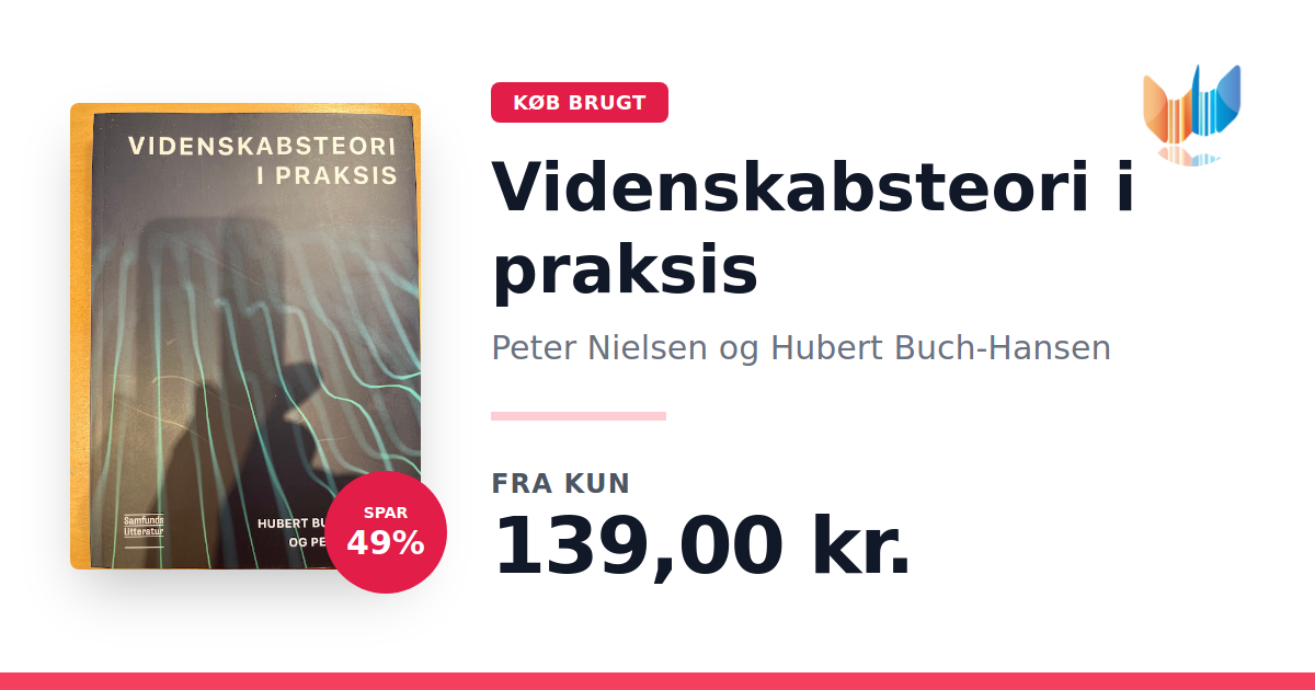Lige nu kan du købe "Videnskabsteori i praksis" af Peter Nielsen og Hubert Buch-Hansen til kun 139,00 kr. Du sparer hele 49% af nyprisen! Bogen du ser her er brugt, og i perfekt stand. Vi har i øjeblikket 2 eksemplarer til salg af "Videnskabsteori i praksis", så husk at se de forskellige udgaver.