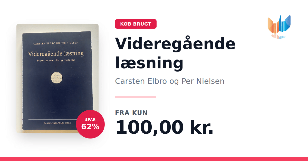 Lige nu kan du købe "Videregående læsning" af Carsten Elbro og Per Nielsen til kun 100,00 kr. Du sparer hele 62% af nyprisen! Bogen du ser her er brugt, og i perfekt stand. Vi har i øjeblikket kun et enkelt eksemplar til salg af "Videregående læsning", så slå til mens du kan!