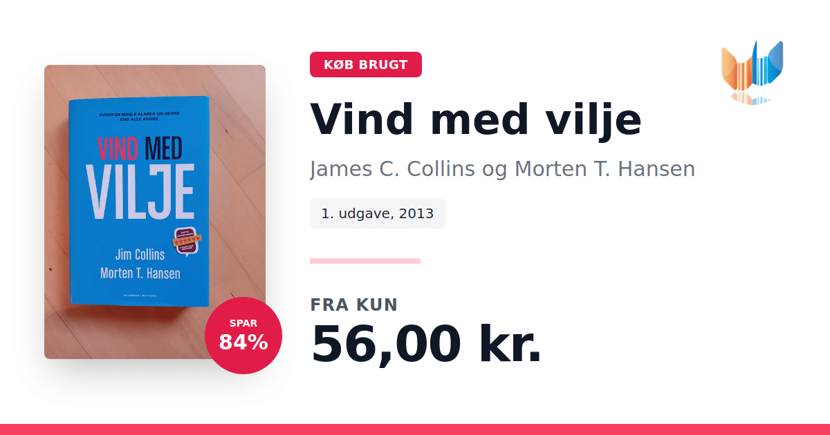 "Vind med vilje" er skabt af Jim Collins og Morten T. Hansen, som med solid forskning kaster nyt lys over, hvad der skal til for at blive en virksomhed i top. Bogen bygger videre på Collins' kendte bestsellersucces og præsenterer deres omfattende studier om, hvorfor nogle virksomheder konsekvent udmærker sig, mens andre kæmper for at følge med. Forfatterne legger vægt på, at succes ikke handler om ekstraordinær held, kreativitet eller risikovillighed, men om evnen til at udnytte de forudsætninger, man har. Gennem grundig analyse og en disciplineret tilgang viser Collins og Hansen, hvordan strategisk beslutningstagning og vedholdenhed fører til, at heldet omsættes til varige resultater. Med clear, evidensbaseret indsigt udfordrer "Vind med vilje" den gængse myte om lederes evner og giver et inspirerende billede af, hvordan bevidste og metodiske tilgange baner vejen til succes i erhvervslivet.