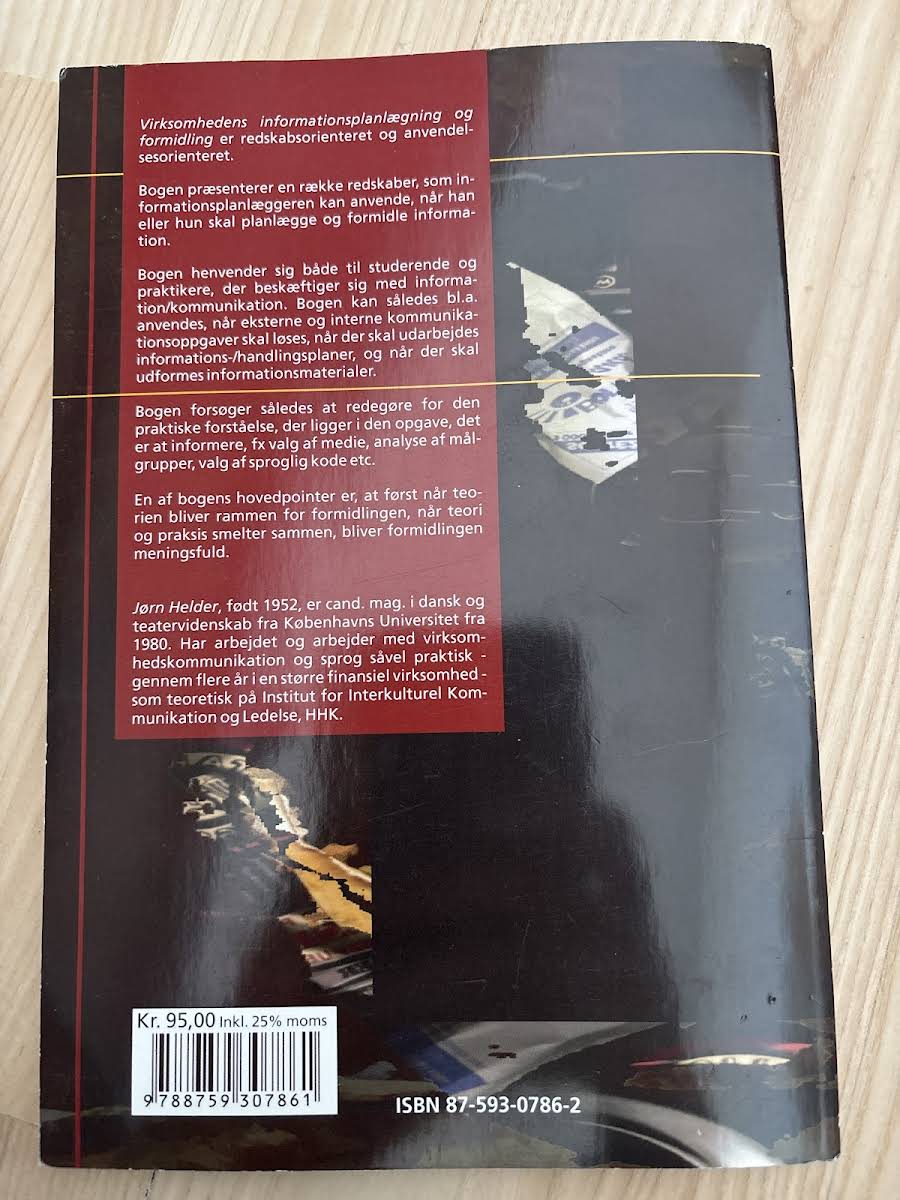 Med en redskabsorienteret tilgang tilbyder Virksomhedens informationsplanlægning og formidling et klart overblik over værktøjerne, der er nødvendige for effektiv informationsstyring. Bogen er målrettet dem, der skal planlægge og formidle information, og den præsenterer en række praktiske redskaber, der understøtter arbejdsprocesserne. Jørn Helder formidler temaet med et anvendelsesorienteret perspektiv, der gør indholdet relevant og let at implementere i den daglige praksis. Med sine 107 sider i første udgave giver bogen læseren en struktureret tilgang til informationsplanlægning og formidling, som både er inspirerende og praktisk.