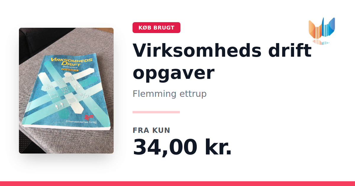 Lige nu kan du købe "Virksomheds drift opgaver" af Flemming ettrup til kun 34,00 kr. Bogen du ser her er brugt, og i god stand. Vi har i øjeblikket 2 eksemplarer til salg af "Virksomhedsdrift", så husk at se de forskellige udgaver.