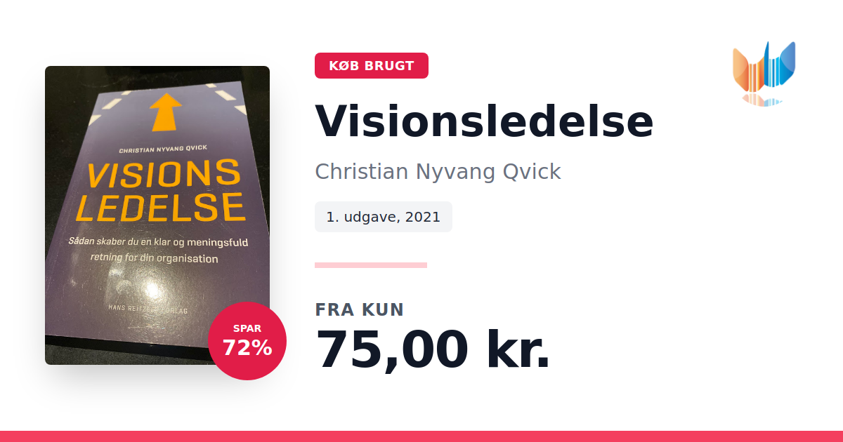Lige nu kan du købe "Visionsledelse" af Christian Nyvang Qvick til kun 75,00 kr. Du sparer hele 72% af nyprisen! Bogen du ser her er brugt, og i god stand. Vi har i øjeblikket kun et enkelt eksemplar til salg af "Visionsledelse", så slå til mens du kan!