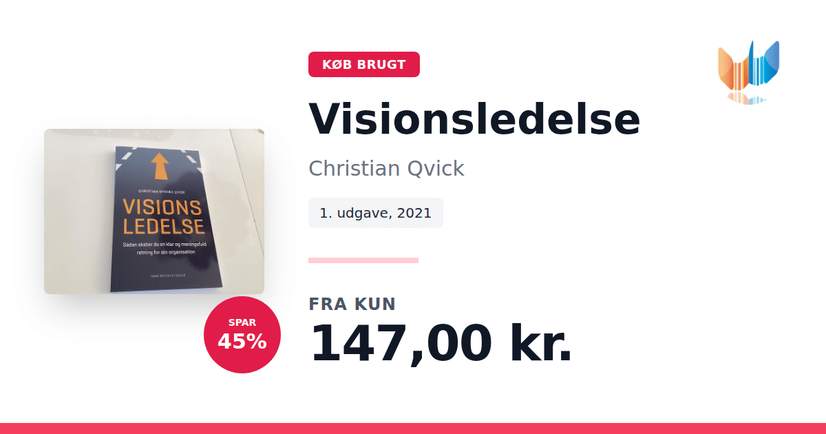 Lige nu kan du købe "Visionsledelse" af Christian Qvick til kun 147,00 kr. Du sparer hele 45% af nyprisen! Bogen du ser her er brugt, og i perfekt stand. Vi har i øjeblikket 2 eksemplarer til salg af "Visionsledelse", så husk at se de forskellige udgaver.