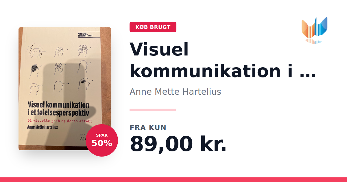 Lige nu kan du købe "Visuel kommunikation i et følelsesperspektiv" af Anne Mette Hartelius til kun 89,00 kr. Du sparer hele 50% af nyprisen! Bogen du ser her er brugt, og i perfekt stand. Vi har i øjeblikket kun et enkelt eksemplar til salg af "Visuel kommunikation i et følelsesperspektiv", så slå til mens du kan!