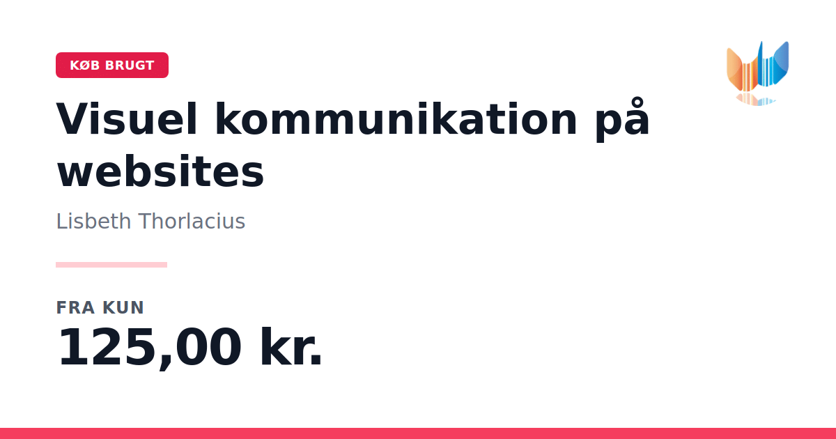 Visuel kommunikation på websites af Lisbeth Thorlacius udkom i 2002 via Roskilde Universitetsforlag. Denne paperback omfatter 220 sider og præsenterer emner relateret til visuel kommunikation i digitale sammenhænge. Bemærk, at denne titel er erstattet af 9788759326725, Visuel kommunikation på digitale medier.