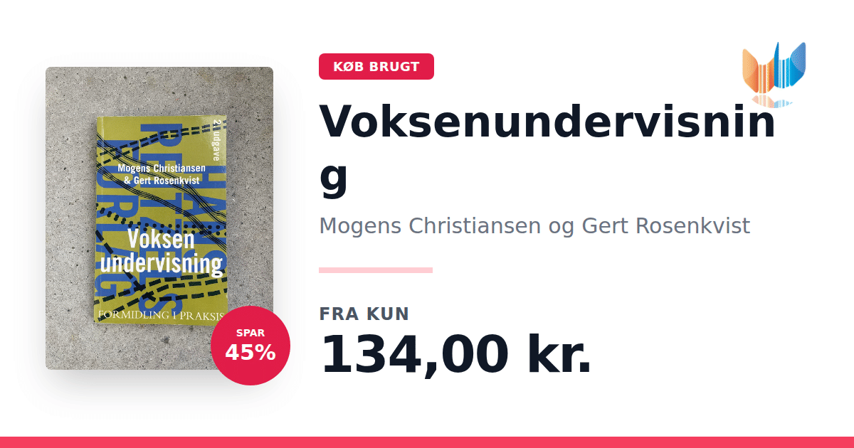Lige nu kan du købe "Voksenundervisning" af Mogens Christiansen og Gert Rosenkvist til kun 134,00 kr. Du sparer hele 45% af nyprisen! Bogen du ser her er brugt, og i perfekt stand. Vi har i øjeblikket kun et enkelt eksemplar til salg af "Voksenundervisning", så slå til mens du kan!