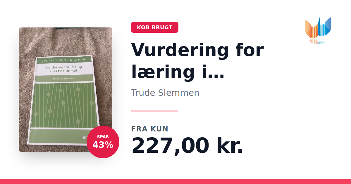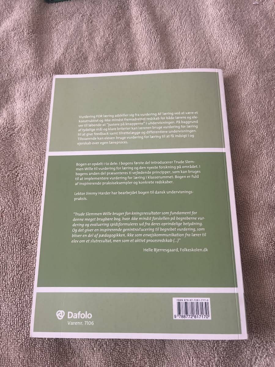 "Vurdering for læring i klasserummet" af Trude Slemmen er en metodebog, der sætter fokus på en kontinuerlig og konstruktiv evalueringspraksis, hvor både lærere og elever aktivt bidrager til undervisningen. Bogen illustrerer, hvordan en løbende evaluering – hvor klare mål og tydelige kriterier danner baggrund – kan give læreren mulighed for at tilpasse og differentiere undervisningen, mens eleven får indblik og ejerskab over sin egen læringsproces. Bogen er inddelt i to hoveddele. I den første del introduceres begrebet "vurdering for læring" samt de seneste forskningsresultater på området. Herefter præsenteres ti vejledende principper, som giver konkrete redskaber og inspirerende praksiseksempler til, hvordan vurdering for læring kan implementeres effektivt i klasseværelset. Med sine 208 sider giver "Vurdering for læring i klasserummet" et solidt grundlag for at udvikle en dynamisk og læringsfremmende undervisningspraksis.