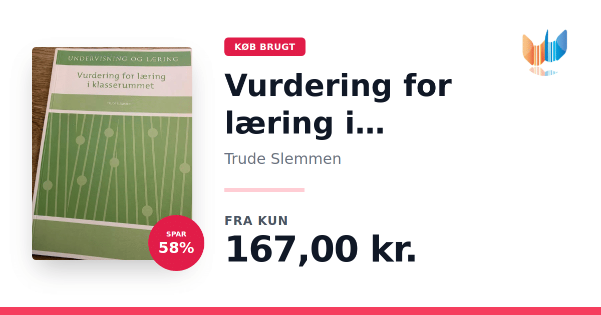 "Vurdering for læring i klasserummet" af Trude Slemmen er en metodebog, der sætter fokus på en kontinuerlig og konstruktiv evalueringspraksis, hvor både lærere og elever aktivt bidrager til undervisningen. Bogen illustrerer, hvordan en løbende evaluering – hvor klare mål og tydelige kriterier danner baggrund – kan give læreren mulighed for at tilpasse og differentiere undervisningen, mens eleven får indblik og ejerskab over sin egen læringsproces. Bogen er inddelt i to hoveddele. I den første del introduceres begrebet "vurdering for læring" samt de seneste forskningsresultater på området. Herefter præsenteres ti vejledende principper, som giver konkrete redskaber og inspirerende praksiseksempler til, hvordan vurdering for læring kan implementeres effektivt i klasseværelset. Med sine 208 sider giver "Vurdering for læring i klasserummet" et solidt grundlag for at udvikle en dynamisk og læringsfremmende undervisningspraksis.