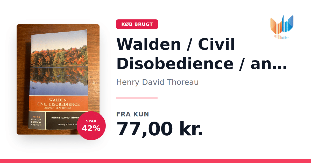 Lige nu kan du købe "Walden / Civil Disobedience / and Other Writings" af Henry David Thoreau til kun 77,00 kr. Du sparer hele 42% af nyprisen! Bogen du ser her er brugt, og i god stand. Vi har i øjeblikket kun et enkelt eksemplar til salg af "Walden / Civil Disobedience / and Other Writings", så slå til mens du kan!