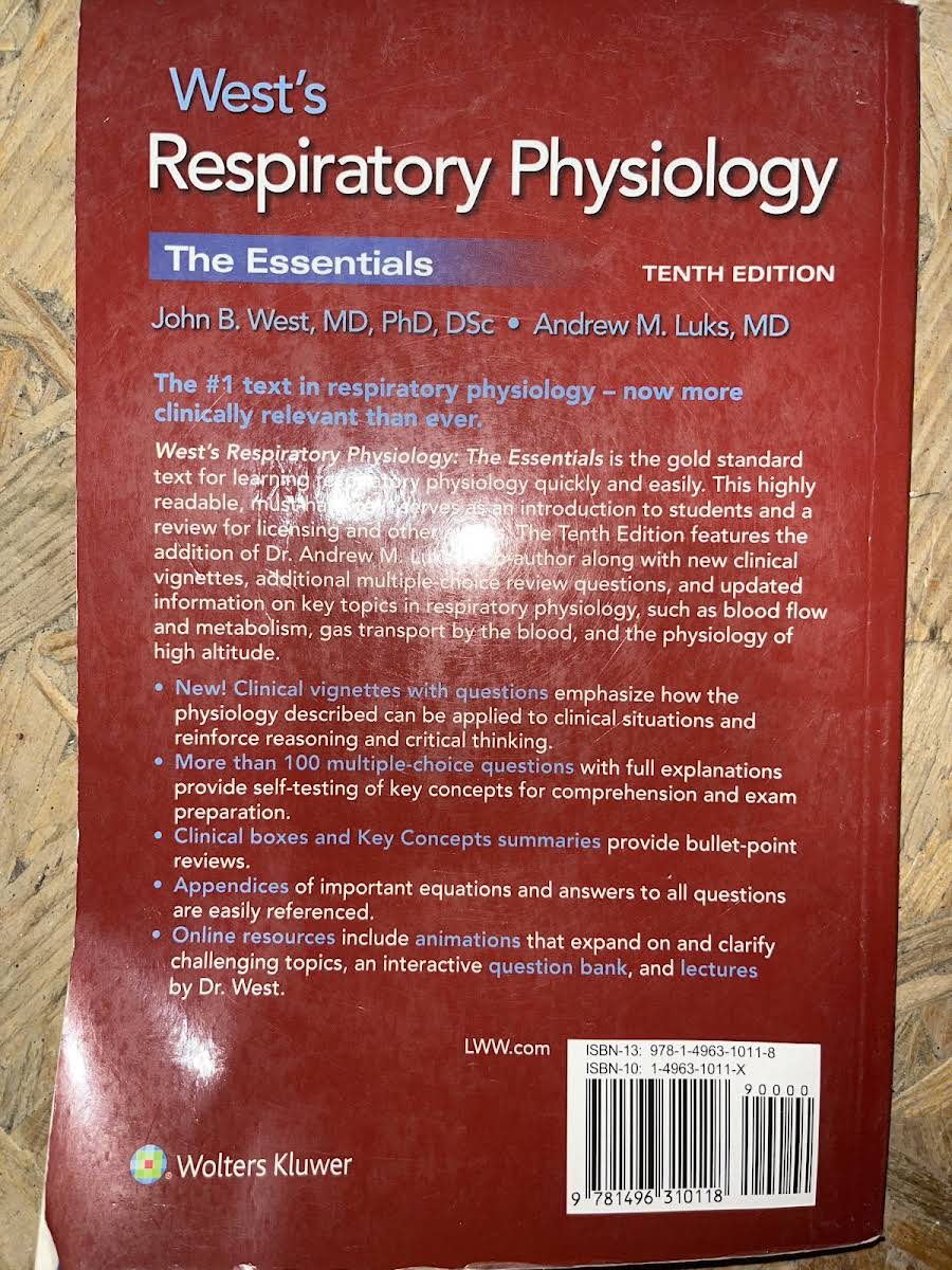 West’s Respiratory Physiology: The Essentials, tiende udgave (2015) af John B. West og Andrew M. Luks, er den førende grundtekst i respirationsfysiologi. Den kombinerer klar og lettilgængelig gennemgang af centrale mekanismer med et praktisk sigte mod studerende og klinikere. I denne udgave har Dr. Luks bidraget med nye kliniske vignetter, der illustrerer fysiologiens rolle i diagnostik og behandling. Hver case efterfølges af spørgsmål, som styrker evnen til at anvende teorien i virkelige patientforløb. Bogen rummer over 100 multiple-choice-spørgsmål med udførlige forklaringer, så læseren kan teste sin forståelse og forberede sig til eksamener. Desuden præsenteres kliniske bokse og oversigter over nøglebegreber, mens appendikser med vigtige formler og komplette svar sikrer enkel opslagsmulighed. Tilhørende online-ressourcer omfatter animationsvideoer, et interaktivt spørgsmålskatalog og en serie forelæsninger af Dr. West, som uddyber komplekse emner og gør læringen endnu mere engagerende.