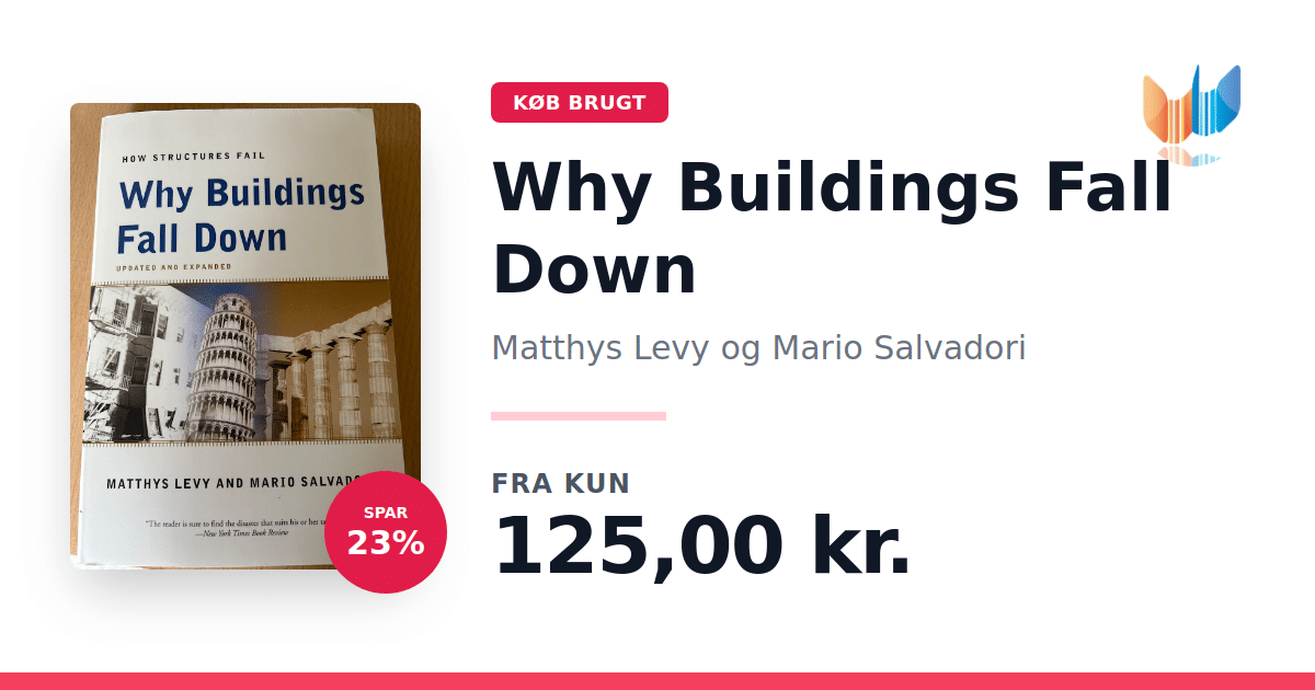 Lige nu kan du købe "Why Buildings Fall Down" af Matthys Levy og Mario Salvadori til kun 125,00 kr. Du sparer hele 23% af nyprisen! Bogen du ser her er brugt, og i perfekt stand. Vi har i øjeblikket kun et enkelt eksemplar til salg af "Why Buildings Fall Down", så slå til mens du kan!