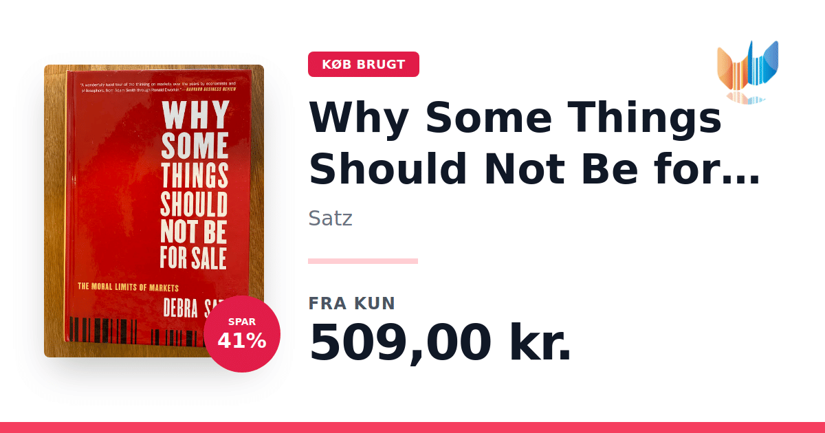 Lige nu kan du købe "Why Some Things Should Not Be for Sale" af Satz til kun 509,00 kr. Du sparer hele 41% af nyprisen! Bogen du ser her er brugt, og i perfekt stand. Vi har i øjeblikket kun et enkelt eksemplar til salg af "Why Some Things Should Not Be for Sale", så slå til mens du kan!