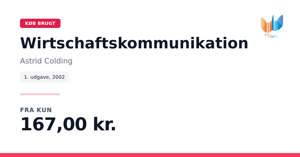Lige nu kan du købe "Wirtschaftskommunikation" af Astrid Colding til kun 167,00 kr. Du sparer hele 20% af nyprisen! Bogen du ser her er brugt, og i perfekt stand. Vi har i øjeblikket 2 eksemplarer til salg af "Wirtschaftskommunikation", så husk at se de forskellige udgaver.