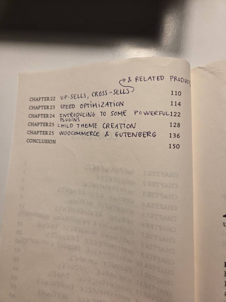 Jeg har skrevet titlerne på de forskellige kapitler i bogens indholdsfortegnelse (se billede). Ellers er bogen fejlfri uden overstregning og ingen noter.