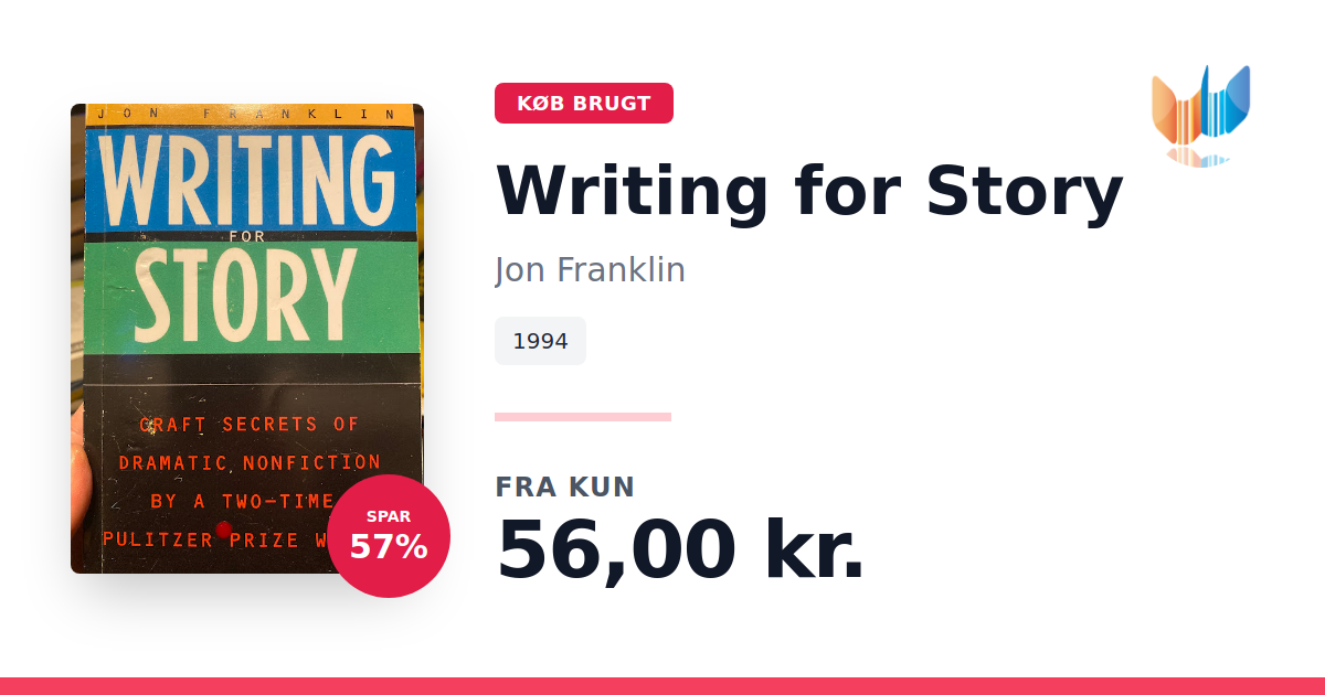 Lige nu kan du købe "Writing for Story" af Jon Franklin til kun 56,00 kr. Du sparer hele 57% af nyprisen! Bogen du ser her er brugt, og i god stand. Vi har i øjeblikket kun et enkelt eksemplar til salg af "Writing for Story", så slå til mens du kan!